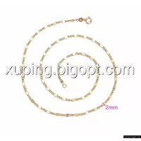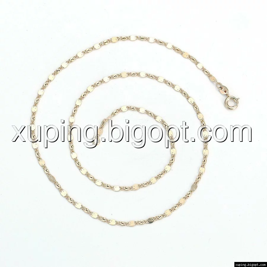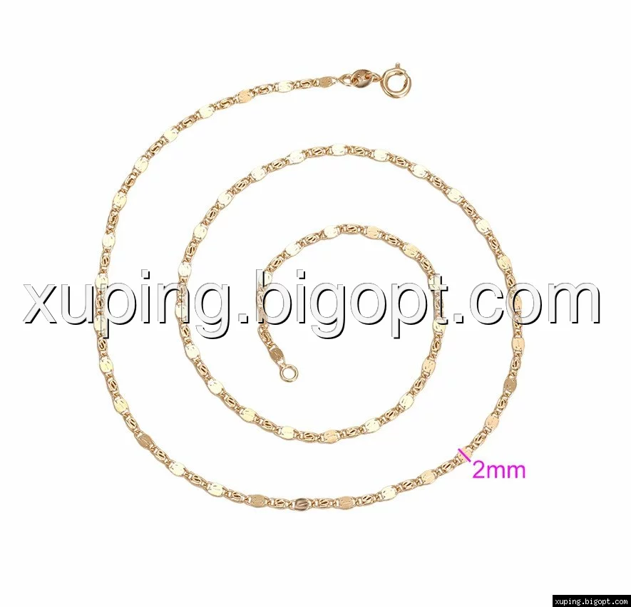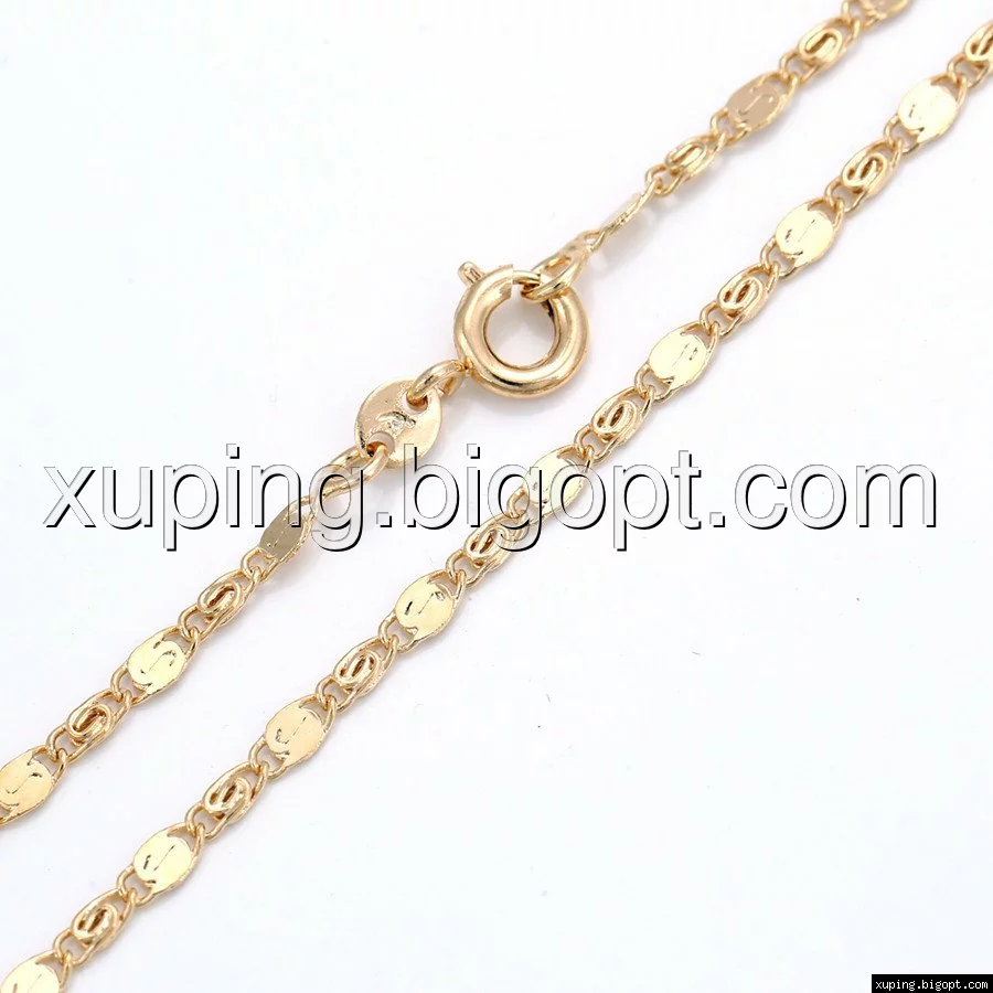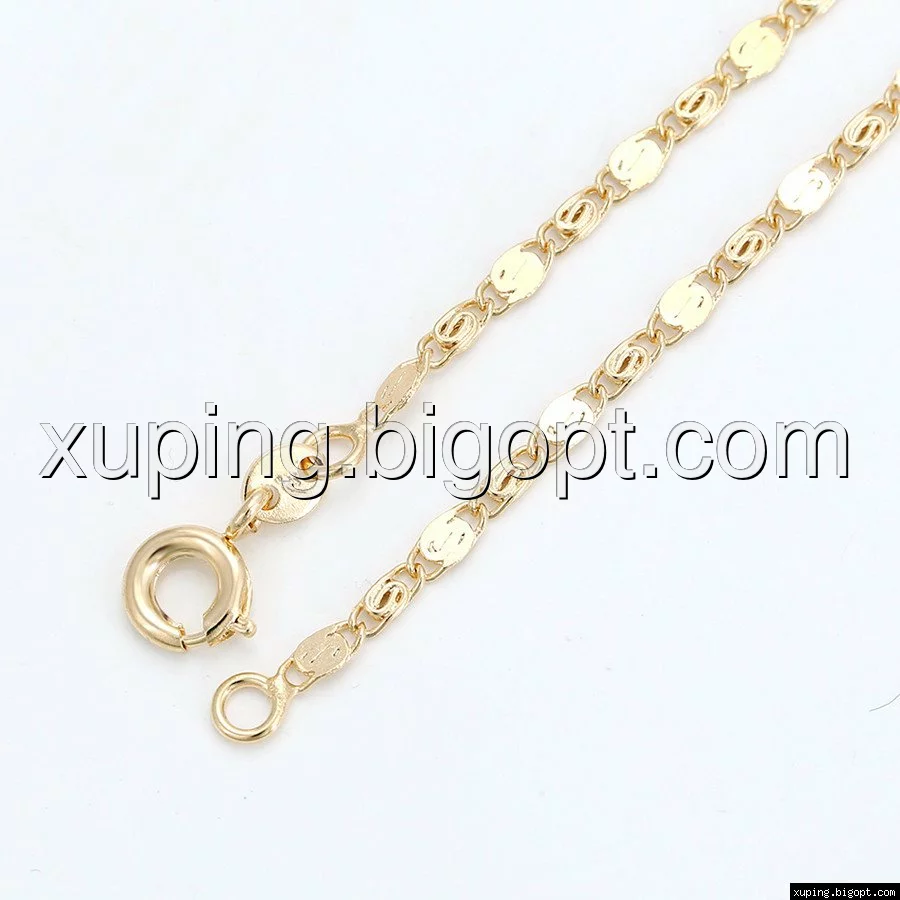 Цепочка выполнена из медицинского сплава, который  изготовляется на основе латуни. Сверху бижутерия покрыта позолотой  для того чтобы придать ей насыщенный цвет, яркий блеск и максимальное сходство с золотом. Кроме того, в качестве декора мастера используют цирконий, который крепится при помощи крапанов. Как известно этот камень широко применяется в ювелирном искусстве, так как он обладает восхитительным блеском и прочностью. Данная бижутерия представлена заводом-производителем марки «Xuping» – все изделия оригинальны и имеют одинаково высокое качество.