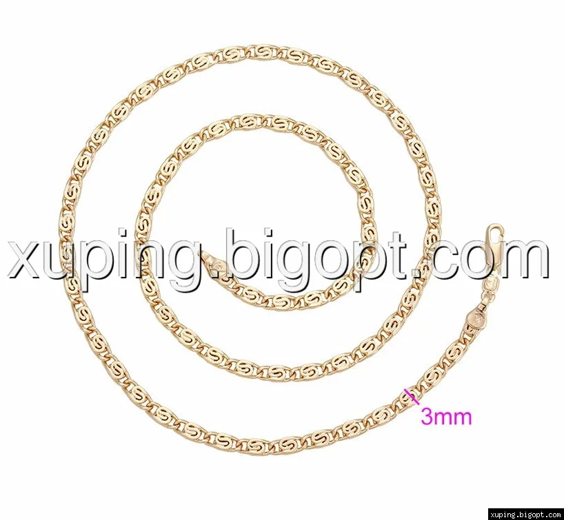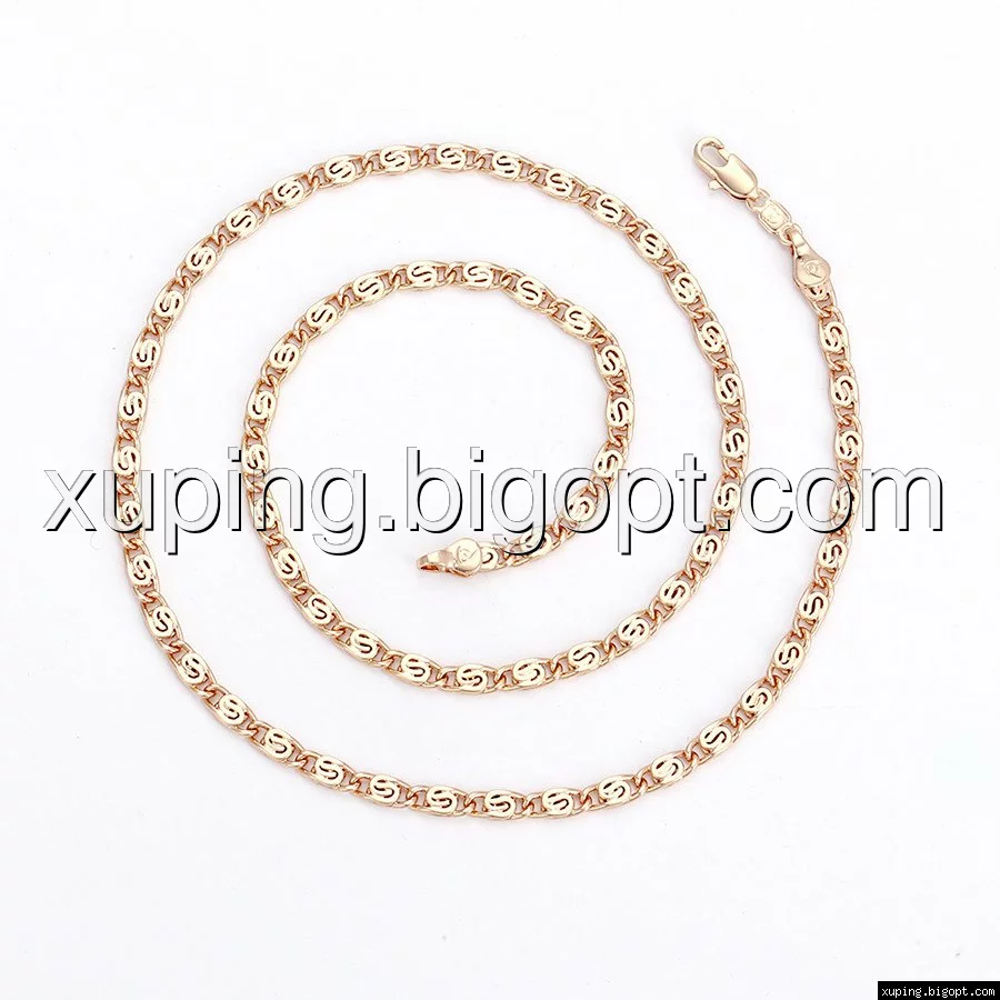 Цепочка выполнена из медицинского сплава, который  изготовляется на основе латуни. Сверху бижутерия покрыта позолотой  для того чтобы придать ей насыщенный цвет, яркий блеск и максимальное сходство с золотом. Кроме того, в качестве декора мастера используют цирконий, который крепится при помощи крапанов. Как известно этот камень широко применяется в ювелирном искусстве, так как он обладает восхитительным блеском и прочностью. Данная бижутерия представлена заводом-производителем марки «Xuping» – все изделия оригинальны и имеют одинаково высокое качество.