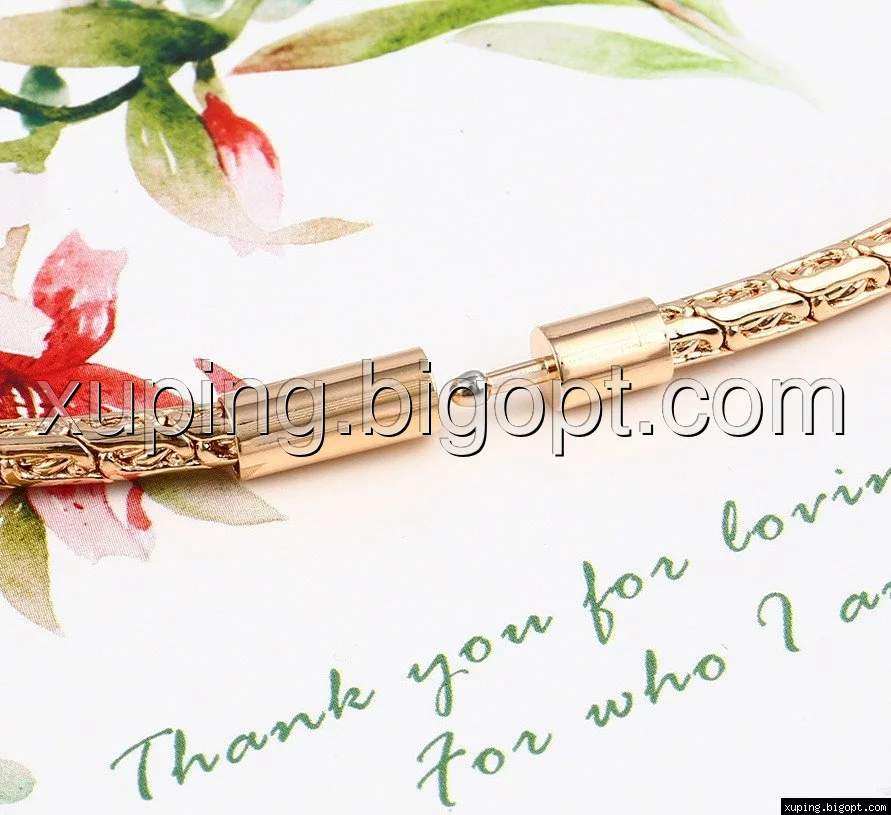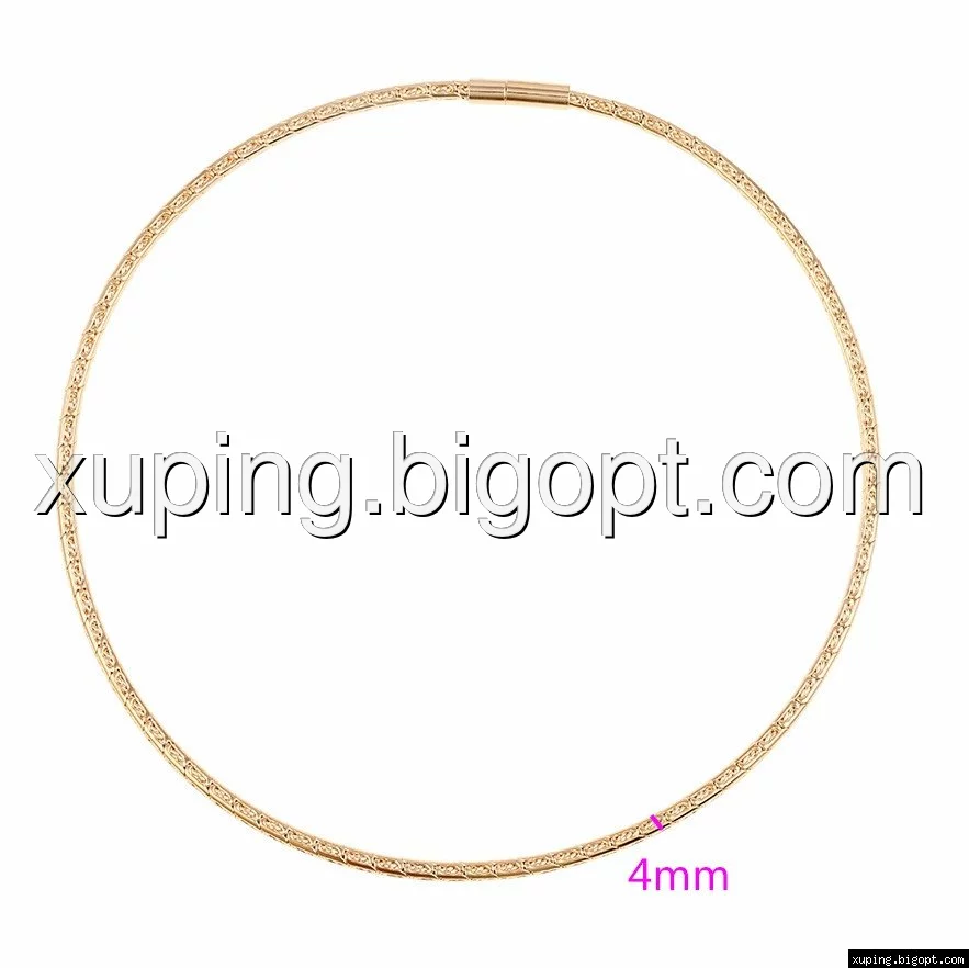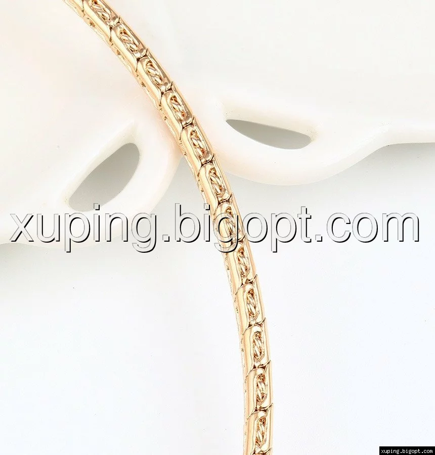 Цепочка выполнена из медицинского сплава на основе латуни с добавлением легирующих элементов, с целью улучшения каких-либо ее свойств, например коррозионной стойкости или прочности. Такой сплав не вызывает аллергии, не вступает в реакцию с потом человека, не меняет свои свойства под воздействием соленой воды и солнца. Поверхность цепочки покрыта золотом 18 карата.
