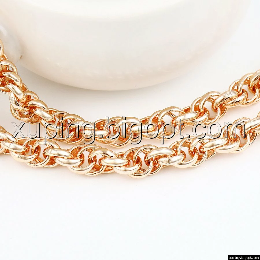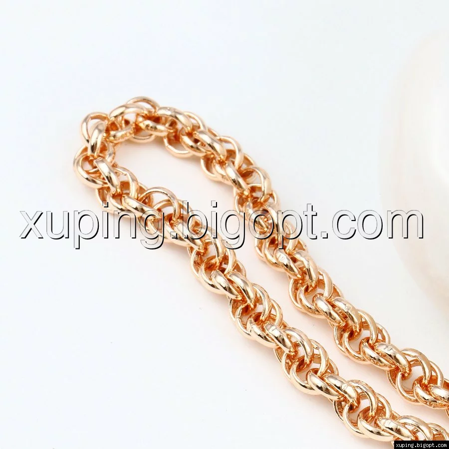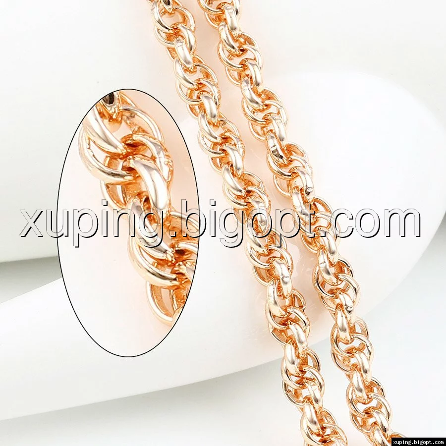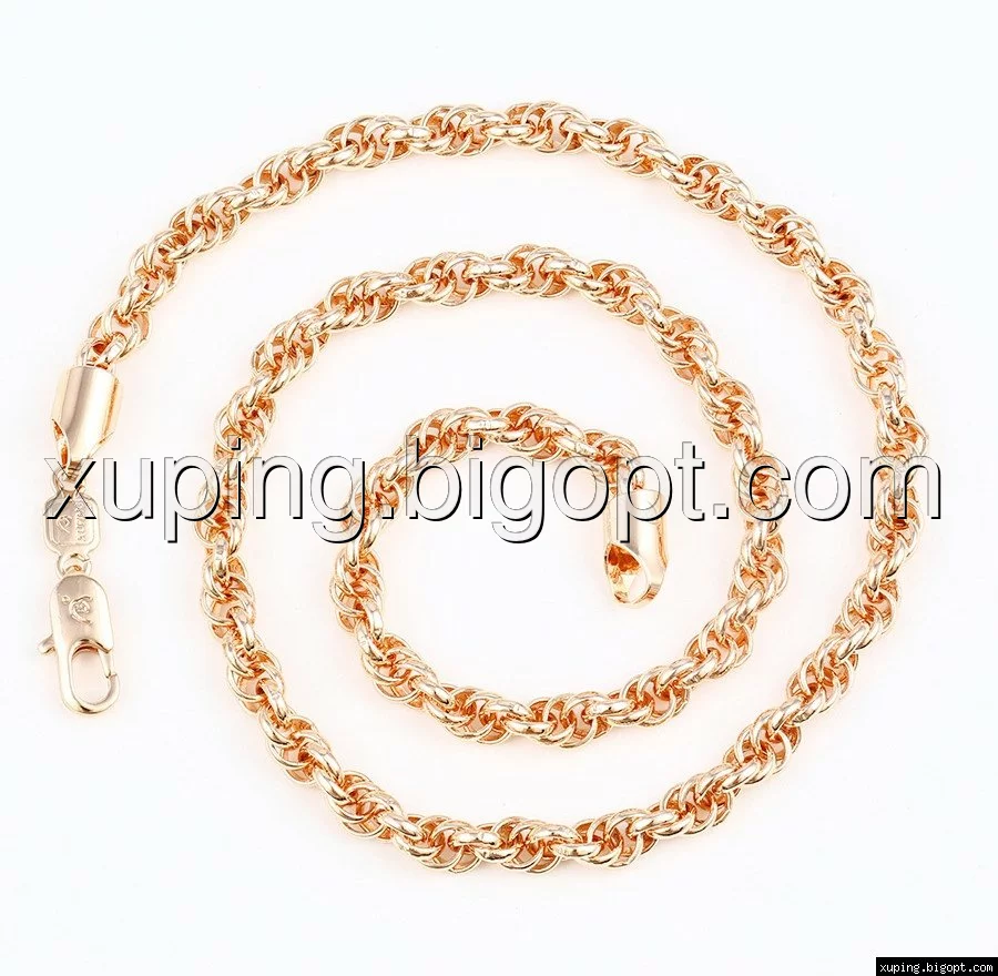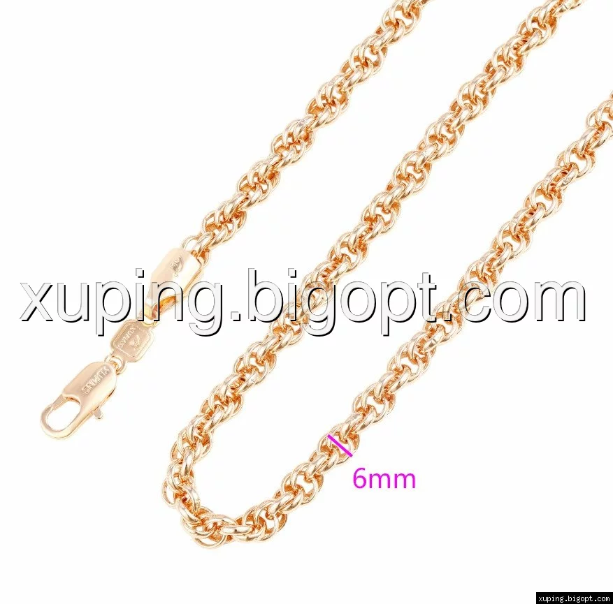 Цепочка выполнена из медицинского сплава на основе латуни с добавлением легирующих элементов, с целью улучшения каких-либо ее свойств, например коррозионной стойкости или прочности. Такой сплав не вызывает аллергии, не вступает в реакцию с потом человека, не меняет свои свойства под воздействием соленой воды и солнца. Поверхность цепочки покрыта золотом 18 карата.