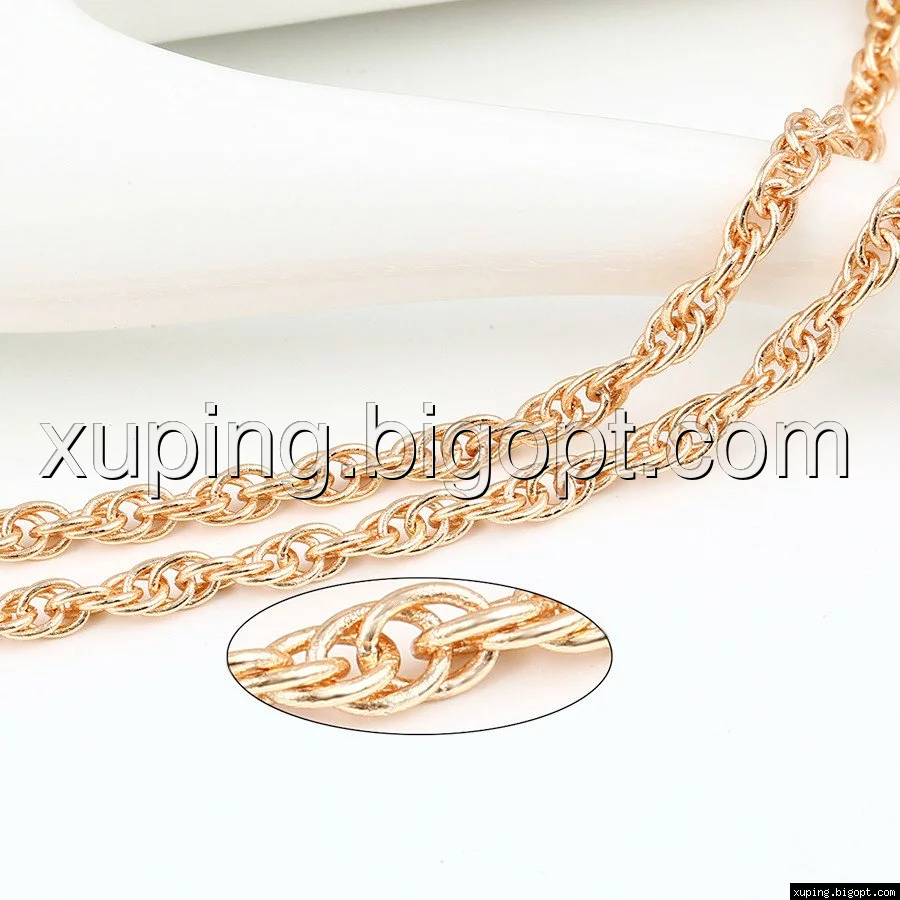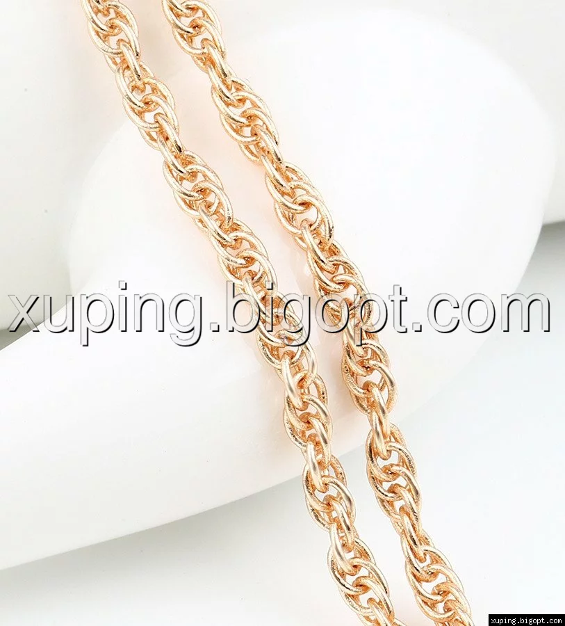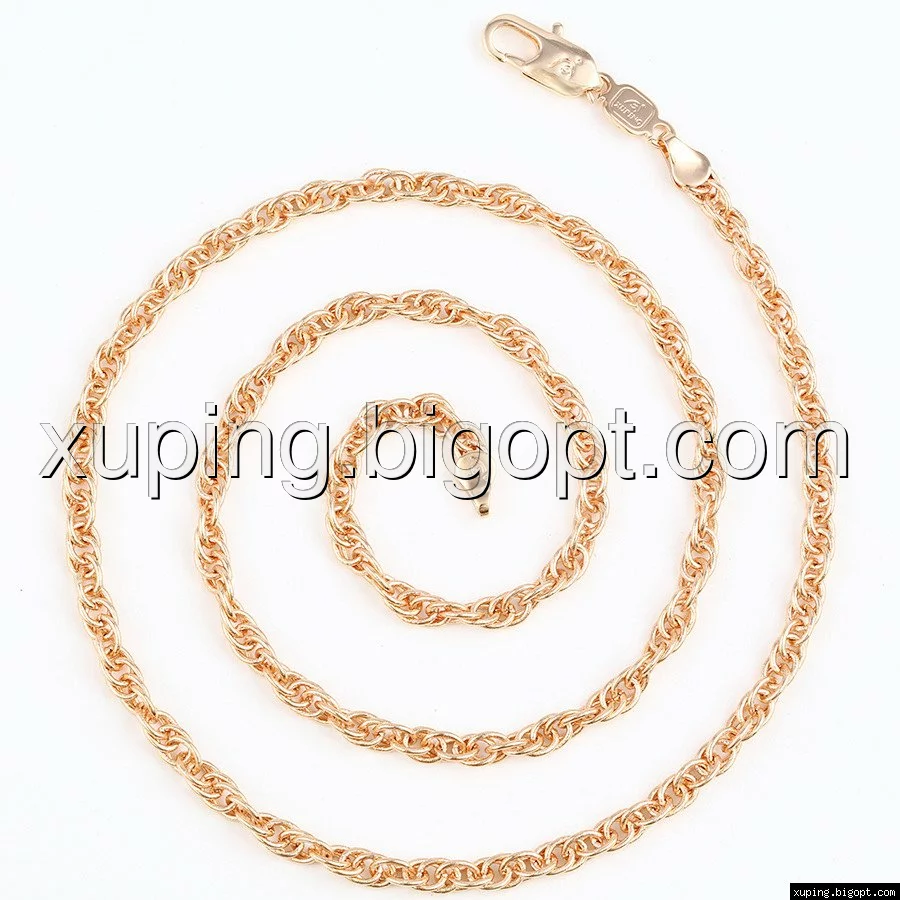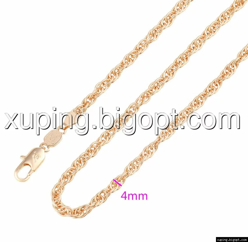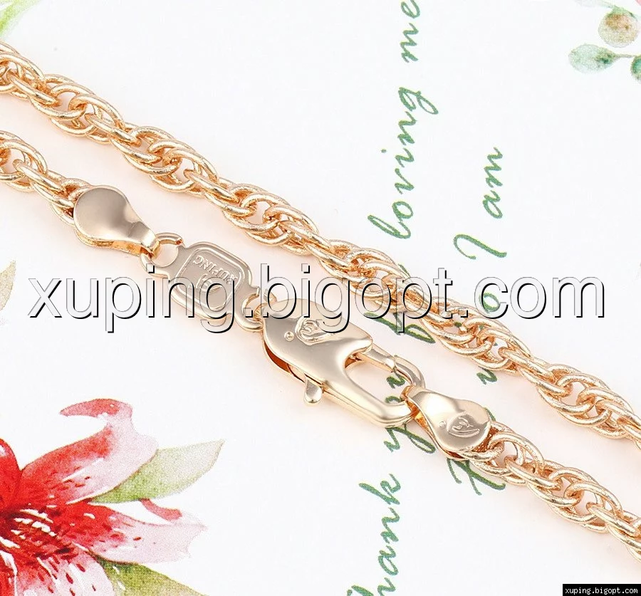 Цепочка выполнена из медицинского сплава на основе латуни с добавлением легирующих элементов, с целью улучшения каких-либо ее свойств, например коррозионной стойкости или прочности. Такой сплав не вызывает аллергии, не вступает в реакцию с потом человека, не меняет свои свойства под воздействием соленой воды и солнца. Поверхность цепочки покрыта золотом 18 карата.