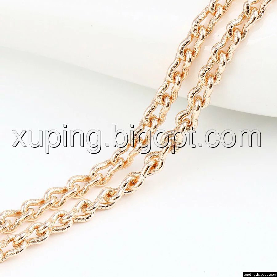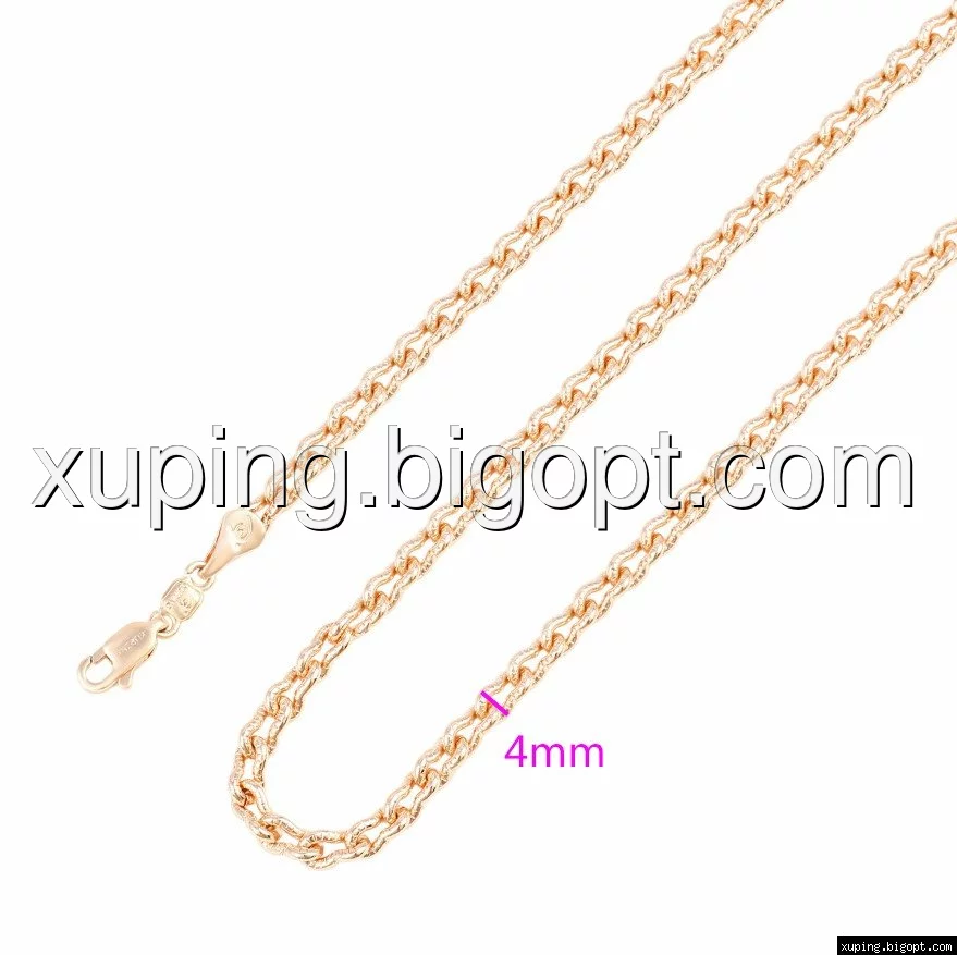 Цепочка выполнена из медицинского сплава на основе латуни с добавлением легирующих элементов, с целью улучшения каких-либо ее свойств, например коррозионной стойкости или прочности. Такой сплав не вызывает аллергии, не вступает в реакцию с потом человека, не меняет свои свойства под воздействием соленой воды и солнца. Поверхность цепочки покрыта золотом 18 карата.