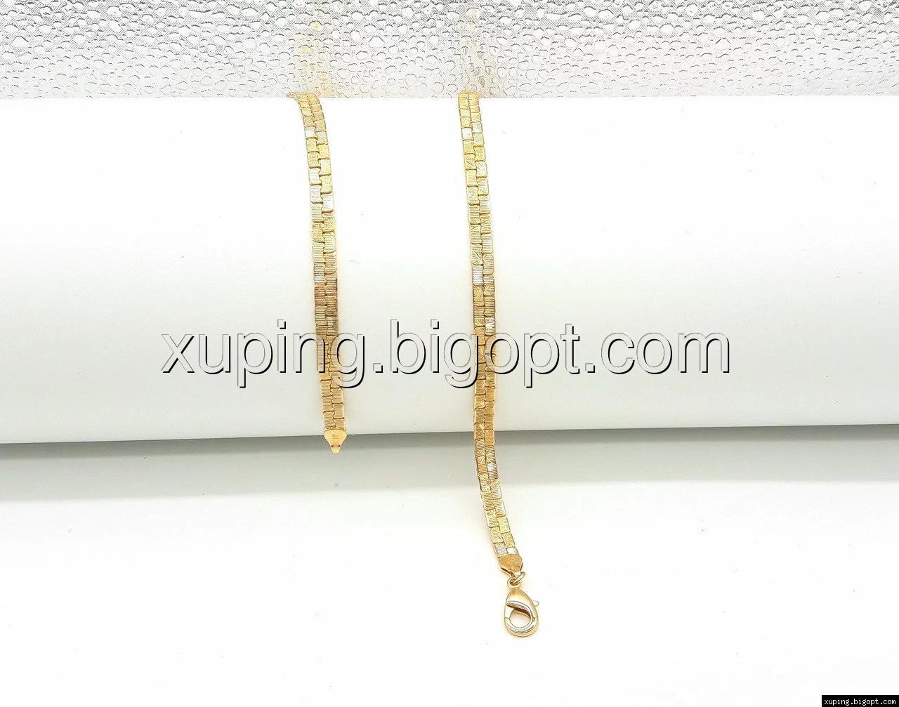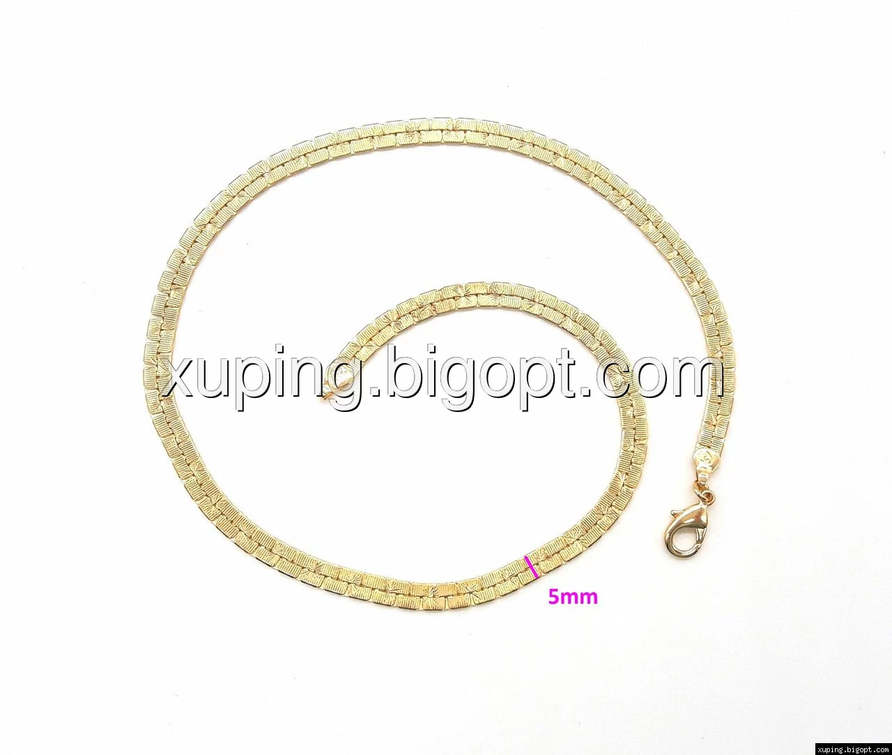 Цепочка выполнена из медицинского сплава, который  изготовляется на основе латуни. Сверху бижутерия покрыта позолотой  для того чтобы придать ей насыщенный цвет, яркий блеск и максимальное сходство с золотом. Кроме того, в качестве декора мастера используют цирконий, который крепится при помощи крапанов. Как известно этот камень широко применяется в ювелирном искусстве, так как он обладает восхитительным блеском и прочностью. Данная бижутерия представлена заводом-производителем марки «Xuping» – все изделия оригинальны и имеют одинаково высокое качество.