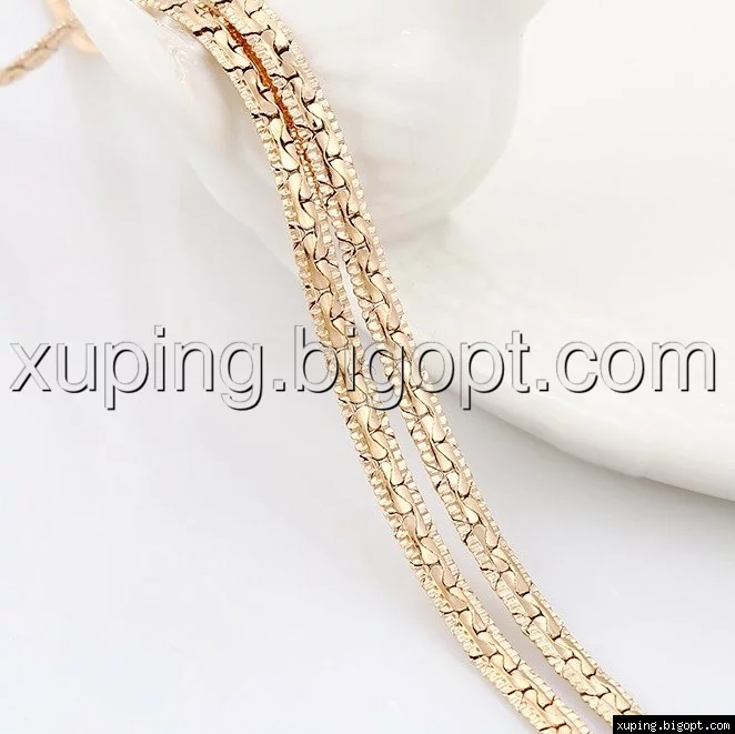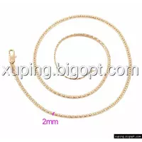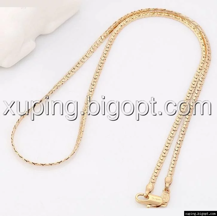 Цепочка выполнена из медицинского сплава на основе латуни с добавлением легирующих елементов, с целью улучшения каких-либо ее свойств, например коррозионной стойкости или прочности. Такой сплав не вызывает аллергии, не вступает в реакцию с потом человека, не меняет свои свойства под воздействием соленой воды и солнца. Поверхность цепочки покрыта золотом 18карата.
