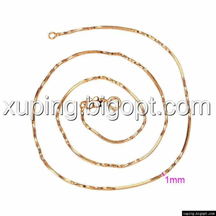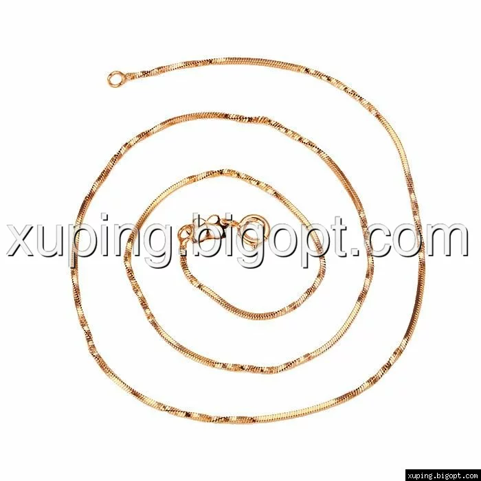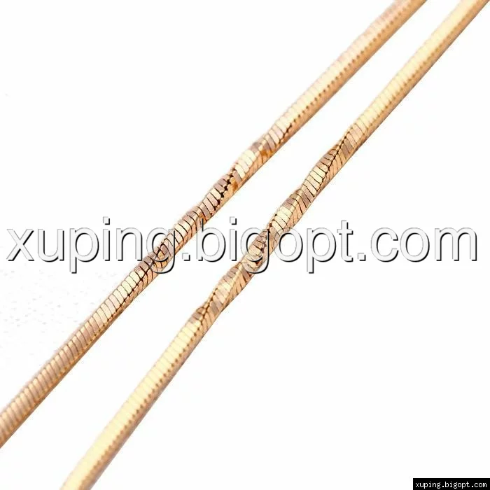 Цепочка выполнена из медицинского сплава на основе латуни с добавлением легирующих елементов, с целью улучшения каких-либо ее свойств, например коррозионной стойкости или прочности. Такой сплав не вызывает аллергии, не вступает в реакцию с потом человека, не меняет свои свойства под воздействием соленой воды и солнца. Поверхность цепочки покрыта золотом 24 карата.