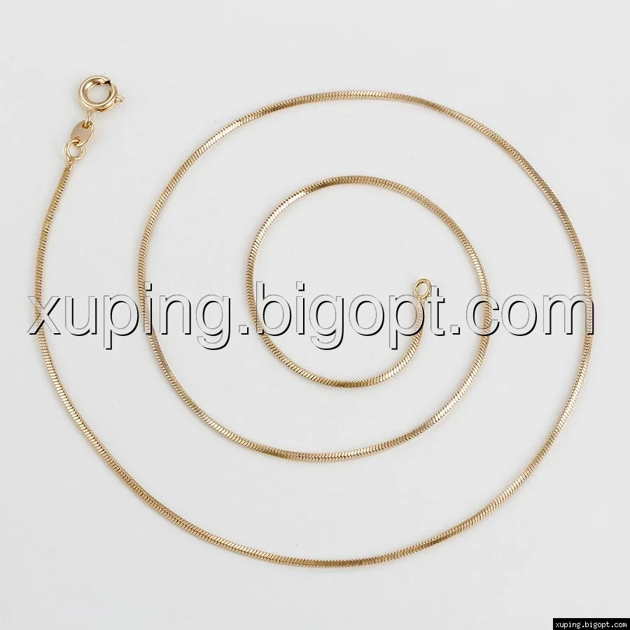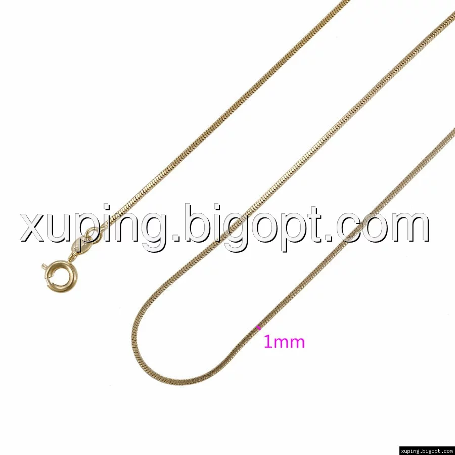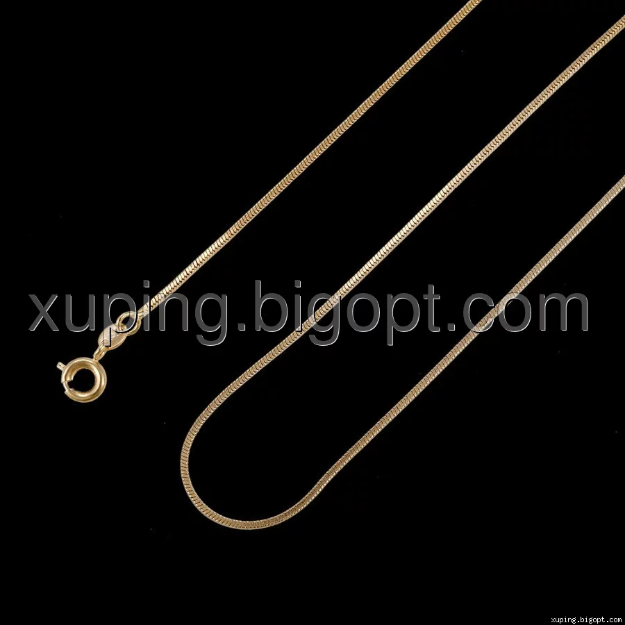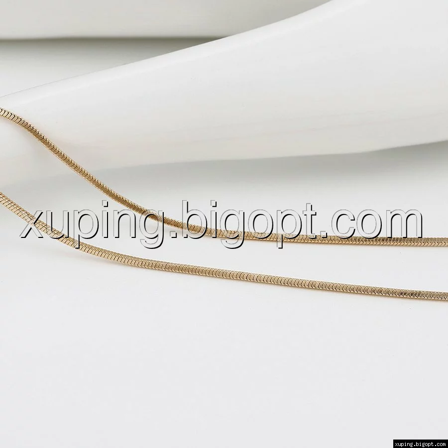 Цепочка выполнена из медицинского сплава на основе латуни с добавлением легирующих элементов, с целью улучшения каких-либо ее свойств, например коррозионной стойкости или прочности. Такой сплав не вызывает аллергии, не вступает в реакцию с потом человека, не меняет свои свойства под воздействием соленой воды и солнца. Поверхность цепочки покрыта золотом 18 карата.