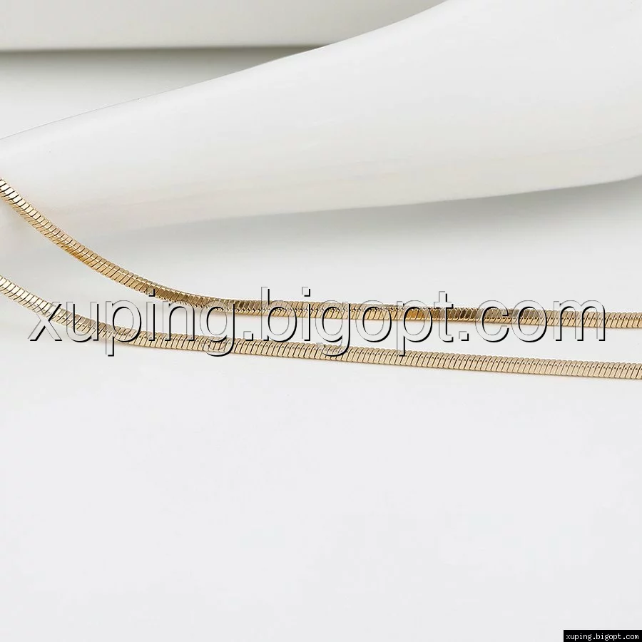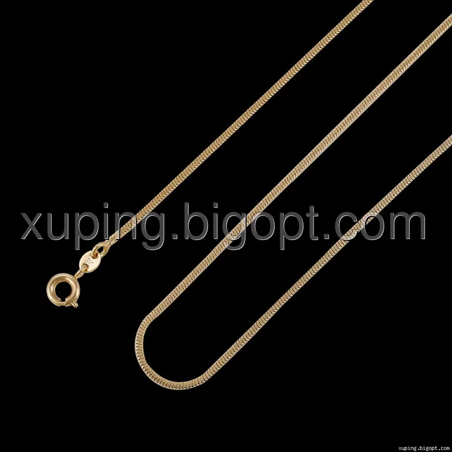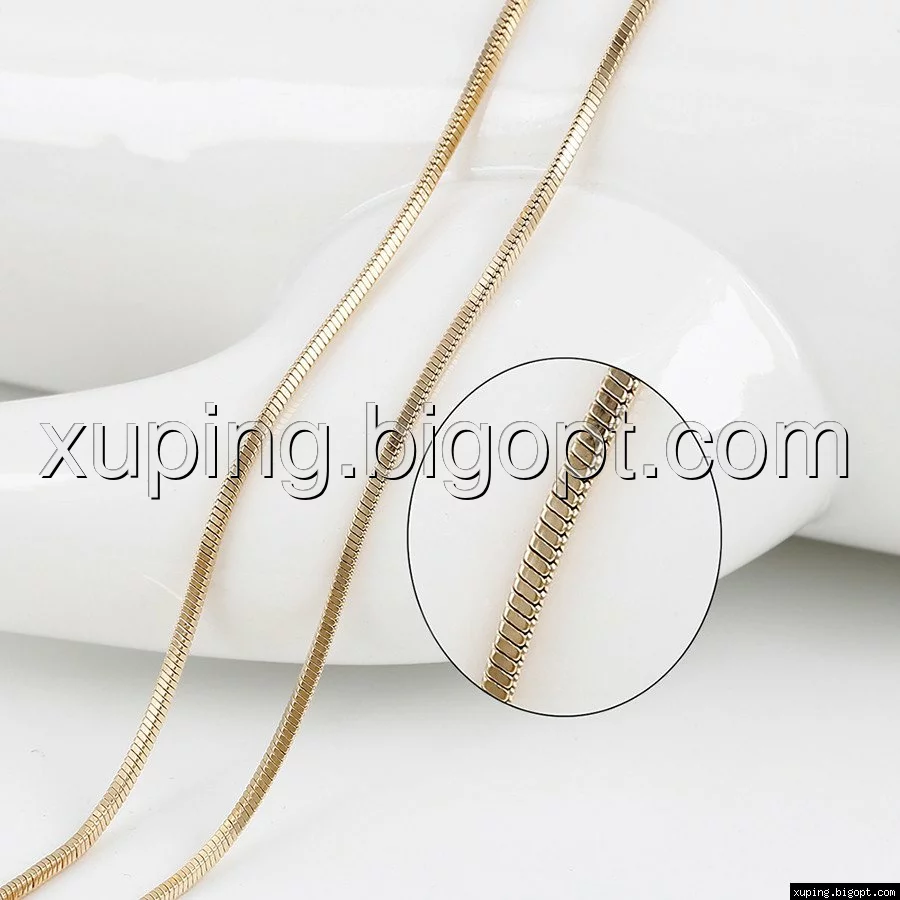 Цепочка выполнена из медицинского сплава на основе латуни с добавлением легирующих элементов, с целью улучшения каких-либо ее свойств, например коррозионной стойкости или прочности. Такой сплав не вызывает аллергии, не вступает в реакцию с потом человека, не меняет свои свойства под воздействием соленой воды и солнца. Поверхность цепочки покрыта золотом 18 карата.