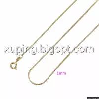 Цепочка выполнена из медицинского сплава на основе латуни с добавлением легирующих элементов, с целью улучшения каких-либо ее свойств, например коррозионной стойкости или прочности. Такой сплав не вызывает аллергии, не вступает в реакцию с потом человека, не меняет свои свойства под воздействием соленой воды и солнца. Поверхность цепочки покрыта золотом 18 карата.