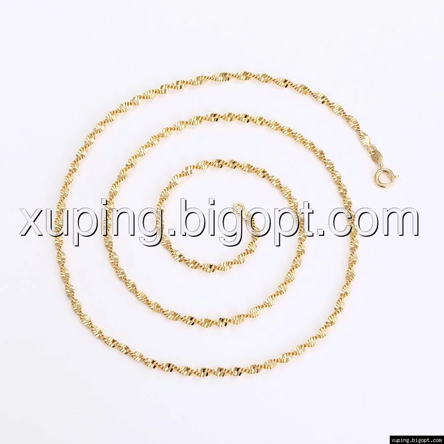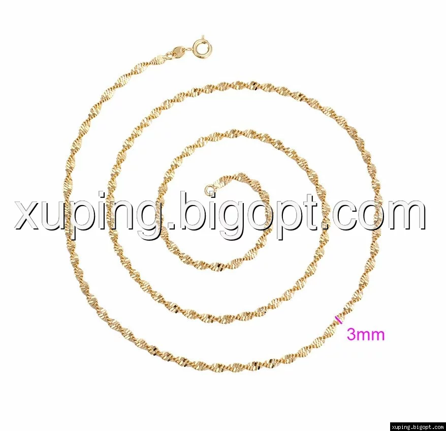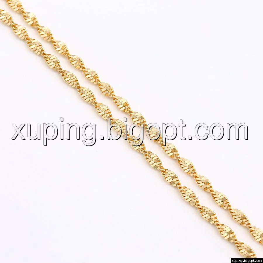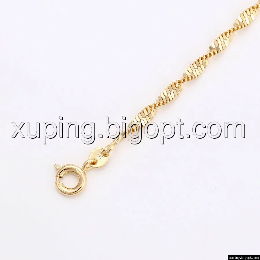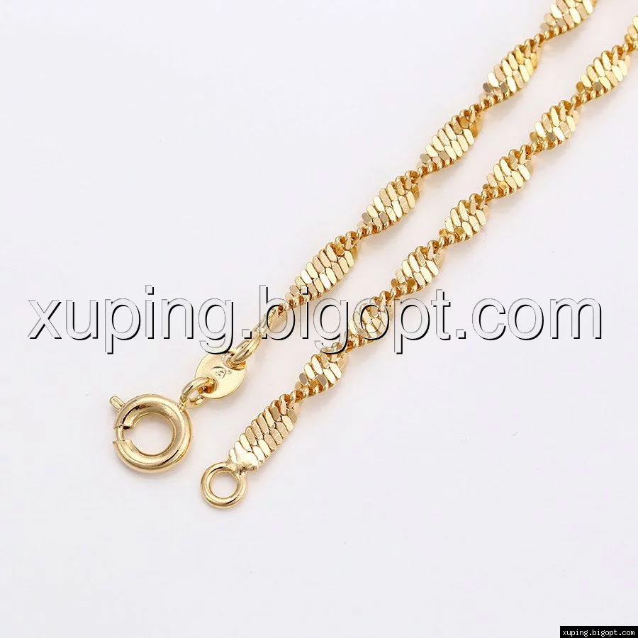 Цепочка выполнена из медицинского сплава, который  изготовляется на основе латуни. Сверху бижутерия покрыта позолотой  для того чтобы придать ей насыщенный цвет, яркий блеск и максимальное сходство с золотом. Кроме того, в качестве декора мастера используют цирконий, который крепится при помощи крапанов. Как известно этот камень широко применяется в ювелирном искусстве, так как он обладает восхитительным блеском и прочностью. Данная бижутерия представлена заводом-производителем марки «Xuping» – все изделия оригинальны и имеют одинаково высокое качество.