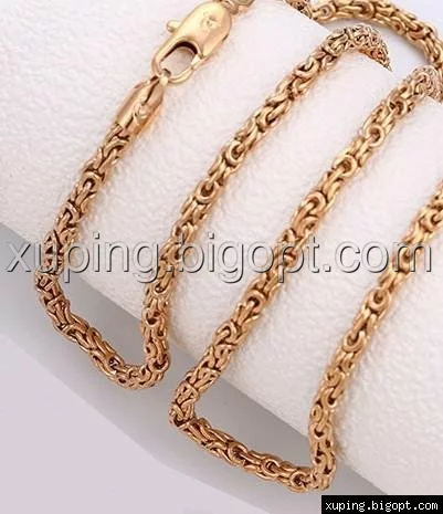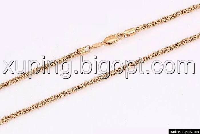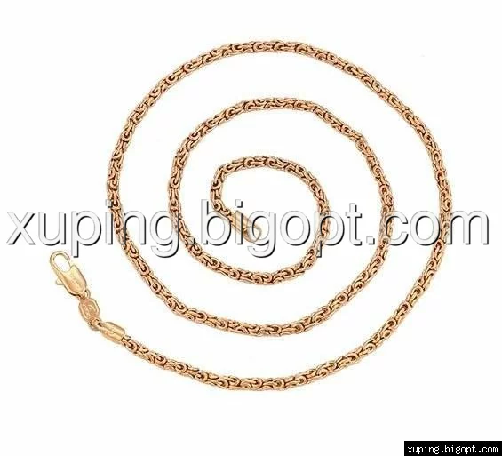 Цепочка выполнена из медицинского сплава на основе латуни с добавлением легирующих елементов, с целью улучшения каких-либо ее свойств, например коррозионной стойкости или прочности. Такой сплав не вызывает аллергии, не вступает в реакцию с потом человека, не меняет свои свойства под воздействием соленой воды и солнца. Поверхность цепочки покрыта золотом 24 карата.