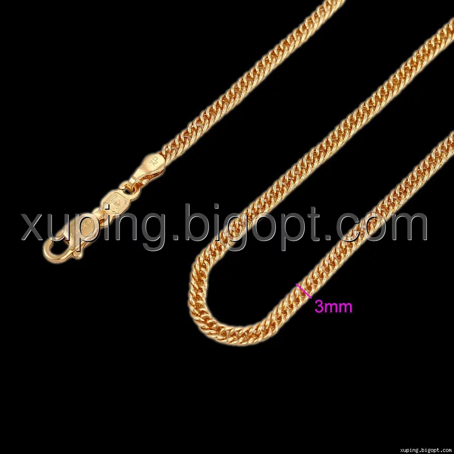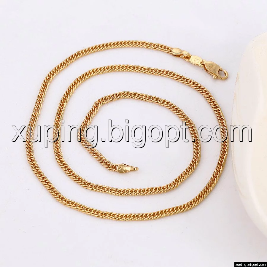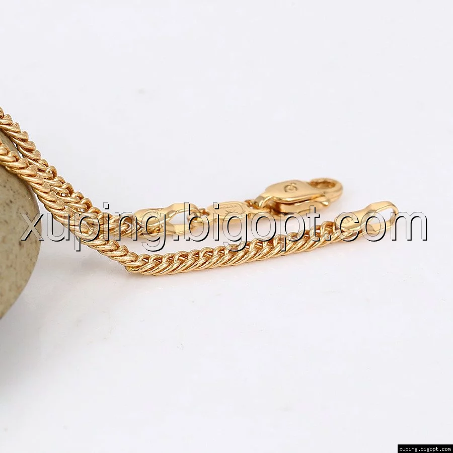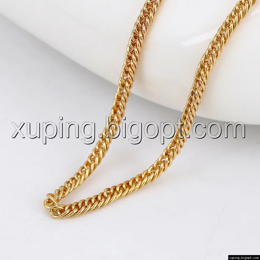 Цепочка выполнена из медицинского сплава на основе латуни с добавлением легирующих элементов, с целью улучшения каких-либо ее свойств, например коррозионной стойкости или прочности. Такой сплав не вызывает аллергии, не вступает в реакцию с потом человека, не меняет свои свойства под воздействием соленой воды и солнца. Поверхность цепочки покрыта золотом 18 карата.