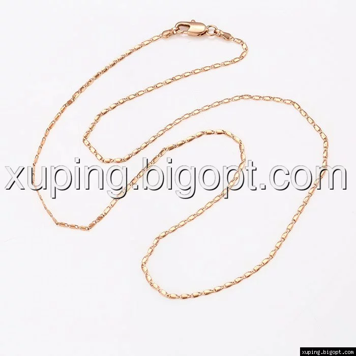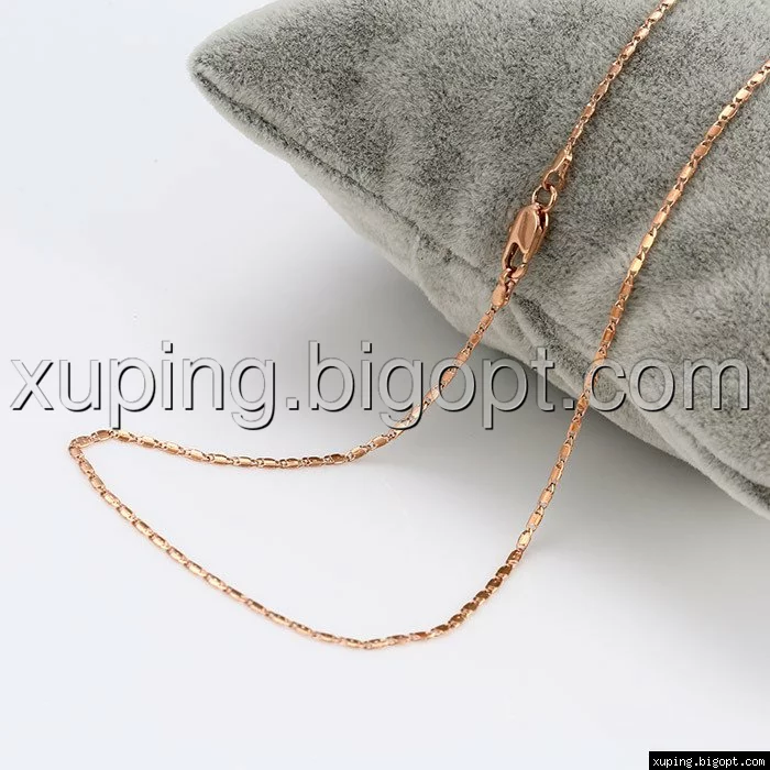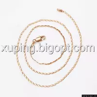 Цепочка выполнена из медицинского сплава на основе латуни с добавлением легирующих елементов, с целью улучшения каких-либо ее свойств, например коррозионной стойкости или прочности. Такой сплав не вызывает аллергии, не вступает в реакцию с потом человека, не меняет свои свойства под воздействием соленой воды и солнца. Поверхность цепочки покрыта золотом 14 карата.