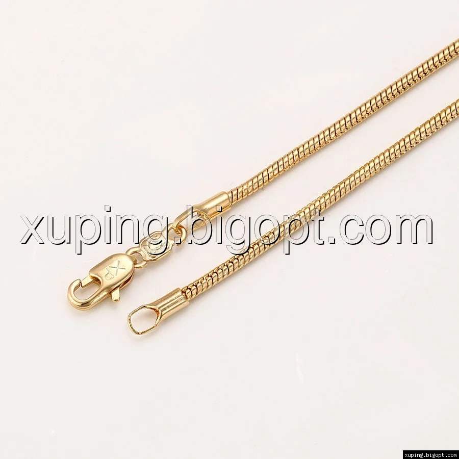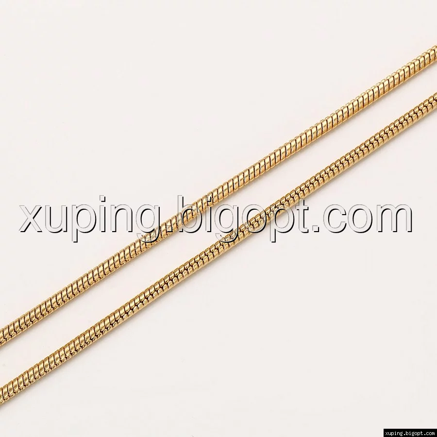 Цепочка выполнена из медицинского сплава на основе латуни с добавлением легирующих элементов, с целью улучшения каких-либо ее свойств, например коррозионной стойкости или прочности. Такой сплав не вызывает аллергии, не вступает в реакцию с потом человека, не меняет свои свойства под воздействием соленой воды и солнца. Поверхность цепочки покрыта золотом 18 карата.