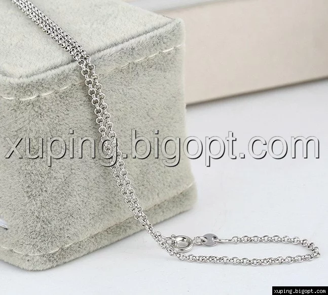Цепочка выполнена из медицинского сплава на основе титана с добавлением легирующих елементов, с целью улучшения каких-либо ее свойств, например коррозионной стойкости или прочности. Такой сплав не вызывает аллергии, не вступает в реакцию с потом человека, не меняет свои свойства под воздействием соленой воды и солнца. Поверхность цепочки покрыта родием чтобы придать ей ярко-белый цвет и дополнительно защитить от повреждений .