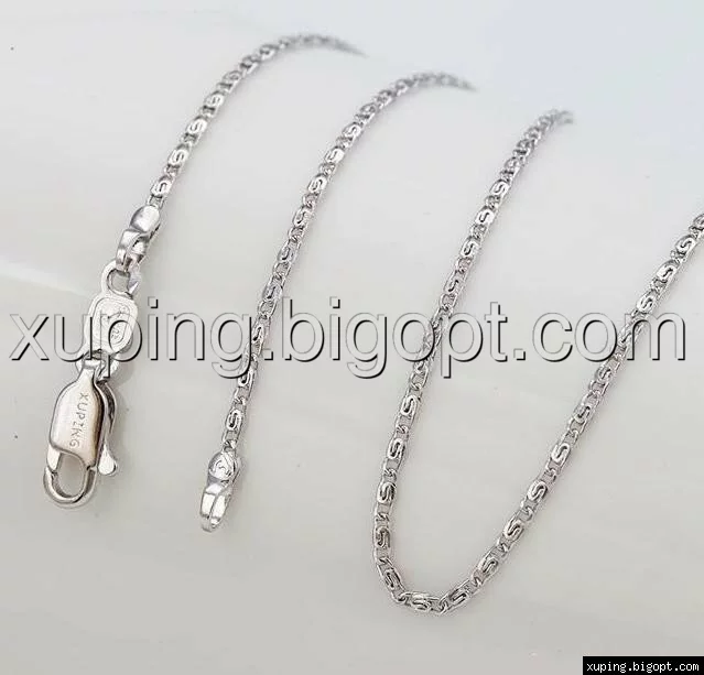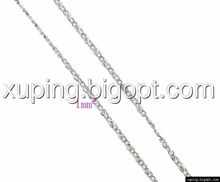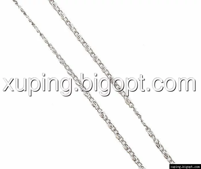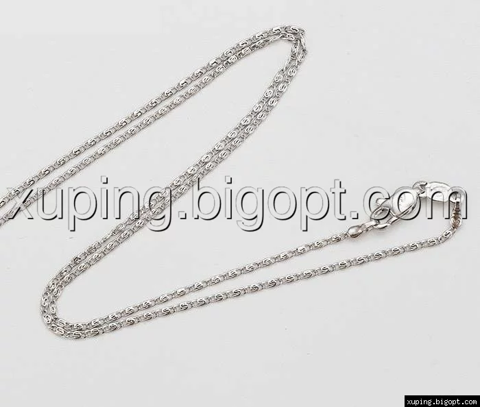 Цепочка выполнена из медицинского сплава на основе титана с добавлением легирующих елементов, с целью улучшения каких-либо ее свойств, например коррозионной стойкости или прочности. Такой сплав не вызывает аллергии, не вступает в реакцию с потом человека, не меняет свои свойства под воздействием соленой воды и солнца. Поверхность цепочки покрыта родием чтобы придать ей ярко-белый цвет и дополнительно защитить от повреждений .