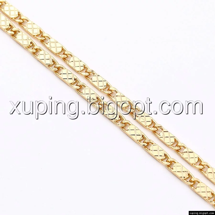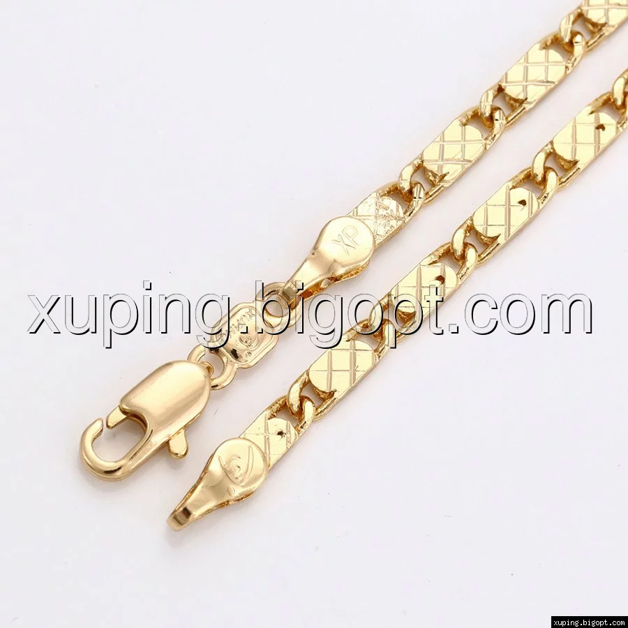 Цепочка выполнена из медицинского сплава, который  изготовляется на основе латуни. Сверху бижутерия покрыта позолотой  для того чтобы придать ей насыщенный цвет, яркий блеск и максимальное сходство с золотом. Кроме того, в качестве декора мастера используют цирконий, который крепится при помощи крапанов. Как известно этот камень широко применяется в ювелирном искусстве, так как он обладает восхитительным блеском и прочностью. Данная бижутерия представлена заводом-производителем марки «Xuping» – все изделия оригинальны и имеют одинаково высокое качество.