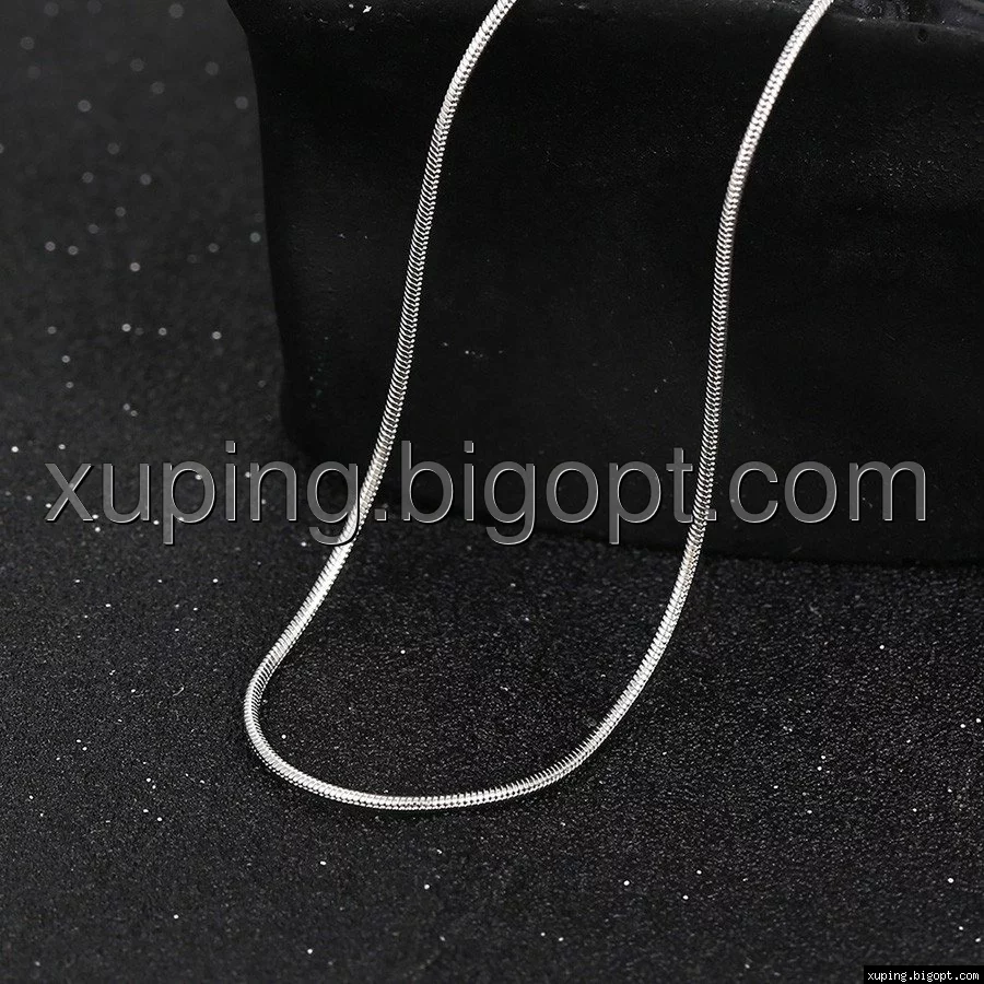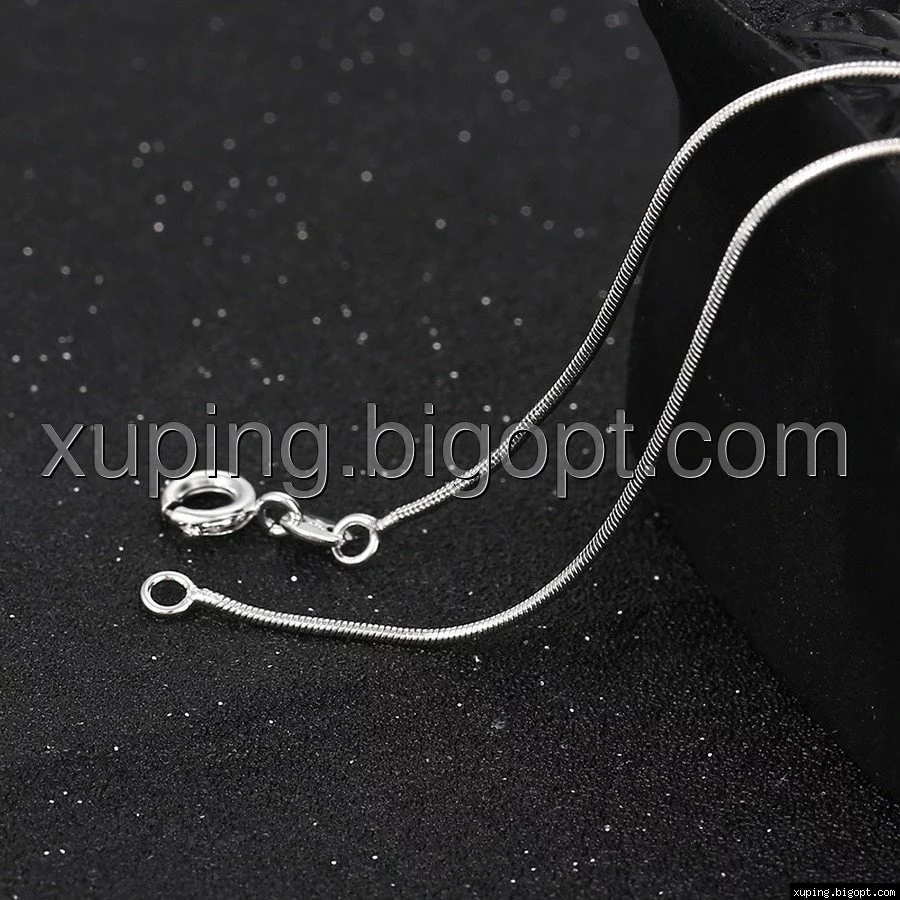 Цепочка выполнена из медицинского сплава на основе титана с добавлением легирующих елементов, с целью улучшения каких-либо ее свойств, например коррозионной стойкости или прочности. Такой сплав не вызывает аллергии, не вступает в реакцию с потом человека, не меняет свои свойства под воздействием соленой воды и солнца. Поверхность цепочки покрыта родием чтобы придать ей ярко-белый цвет и дополнительно защитить от повреждений .