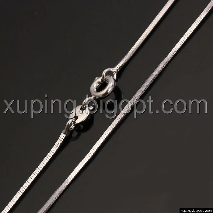 Цепочка выполнена из медицинского сплава на основе титана с добавлением легирующих елементов, с целью улучшения каких-либо ее свойств, например коррозионной стойкости или прочности. Такой сплав не вызывает аллергии, не вступает в реакцию с потом человека, не меняет свои свойства под воздействием соленой воды и солнца. Поверхность цепочки покрыта родием чтобы придать ей ярко-белый цвет и дополнительно защитить от повреждений .