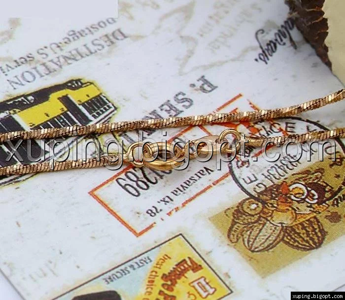 Цепочка выполнена из медицинского сплава на основе латуни с добавлением легирующих елементов, с целью улучшения каких-либо ее свойств, например коррозионной стойкости или прочности. Такой сплав не вызывает аллергии, не вступает в реакцию с потом человека, не меняет свои свойства под воздействием соленой воды и солнца. Поверхность цепочки покрыта золотом 18 карата.