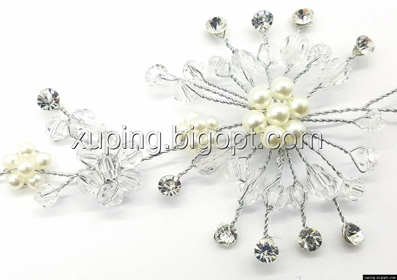 Украшение для волос, Цветочки с жемчугом и камнями, р.27