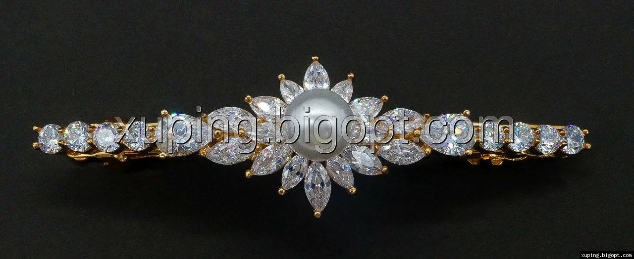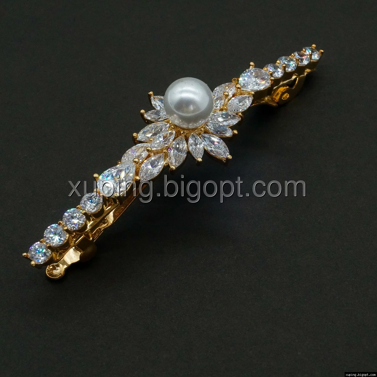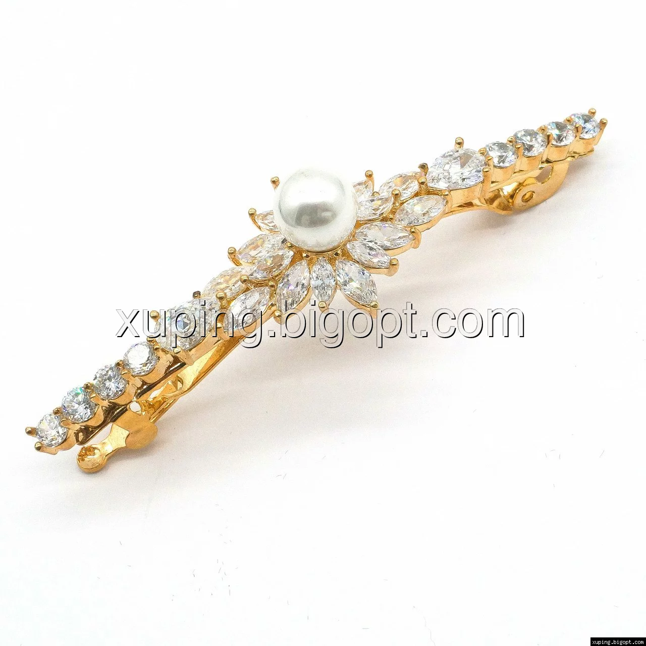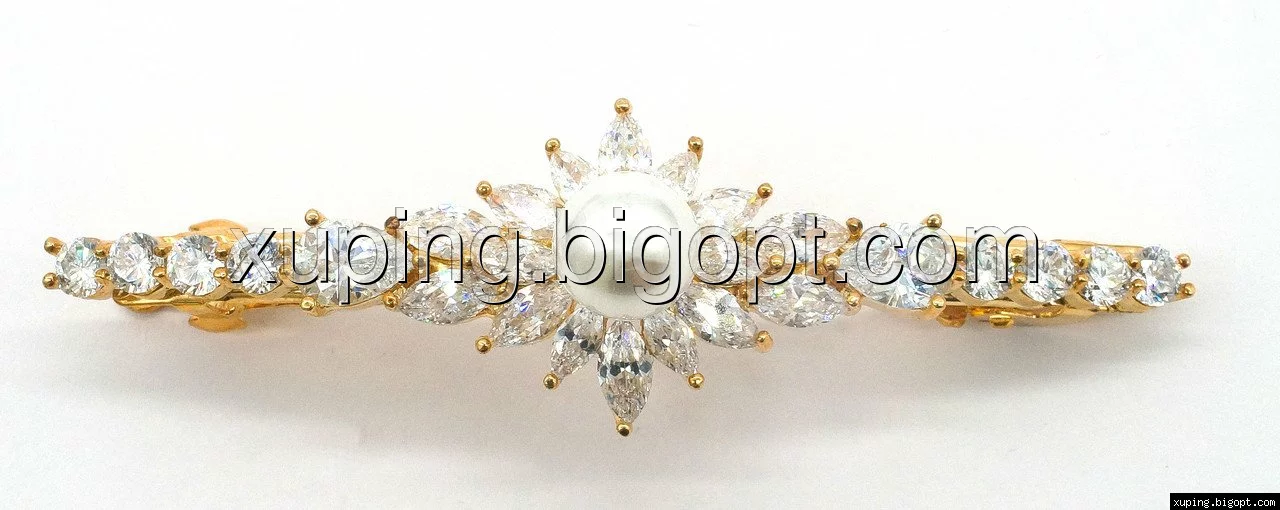 Заколка позолоченная, Ажурный Цветок с жемчугом