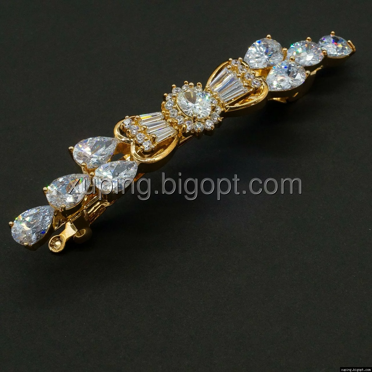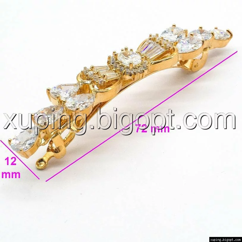 Заколка выполнена из медицинского сплава на основе латуни с добавлением легирующих элементов, с целью улучшения каких-либо его свойств, например коррозионной стойкости или прочности. Такой сплав не вызывает аллергии, не вступает в реакцию с потом человека, не меняет свои свойства под воздействием соленой воды и солнца. Поверхность заколки покрыта золотом 18 карата.