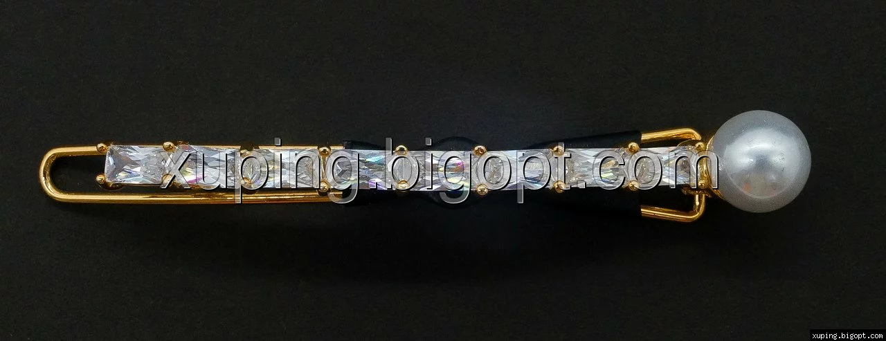 Заколка позолоченная, Дорожка багетного циркония с Жемчужиной
