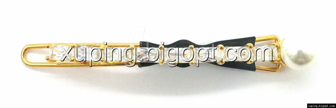 Заколка выполнена из медицинского сплава на основе латуни с добавлением легирующих элементов, с целью улучшения каких-либо его свойств, например коррозионной стойкости или прочности. Такой сплав не вызывает аллергии, не вступает в реакцию с потом человека, не меняет свои свойства под воздействием соленой воды и солнца. Поверхность заколки покрыта золотом 18 карата.