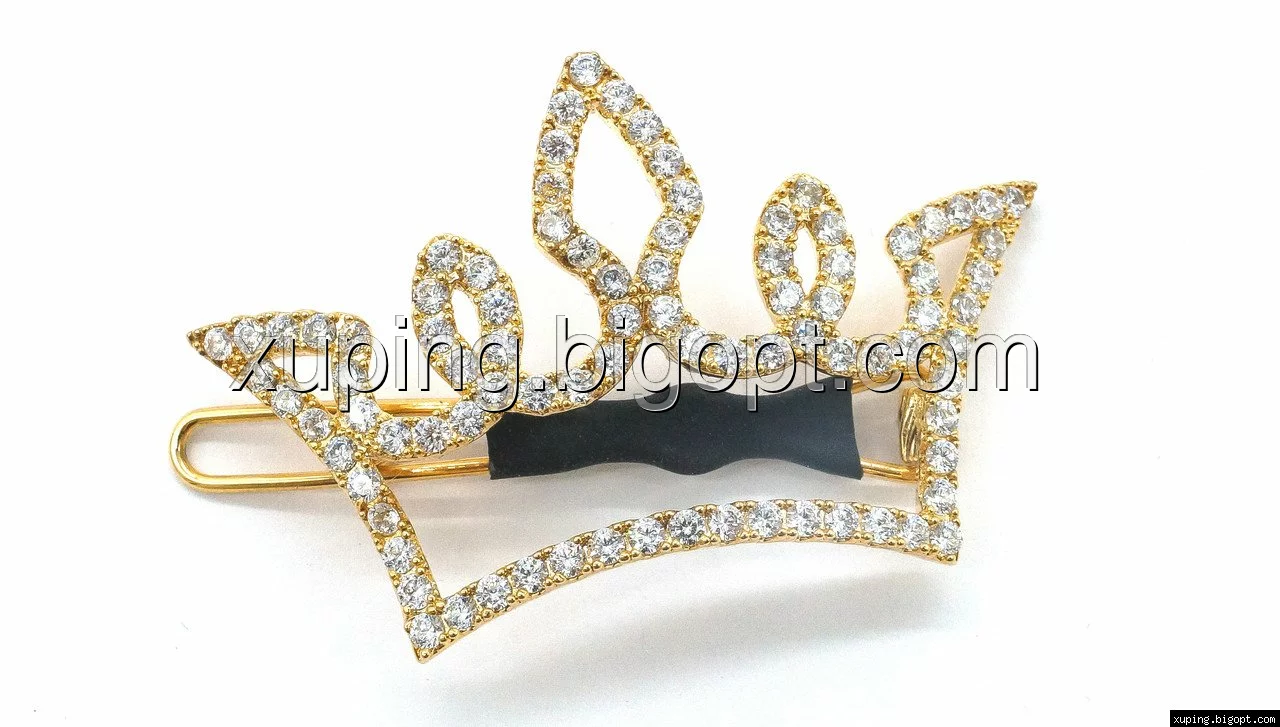 Заколка позолоченная, Корона с цирконием