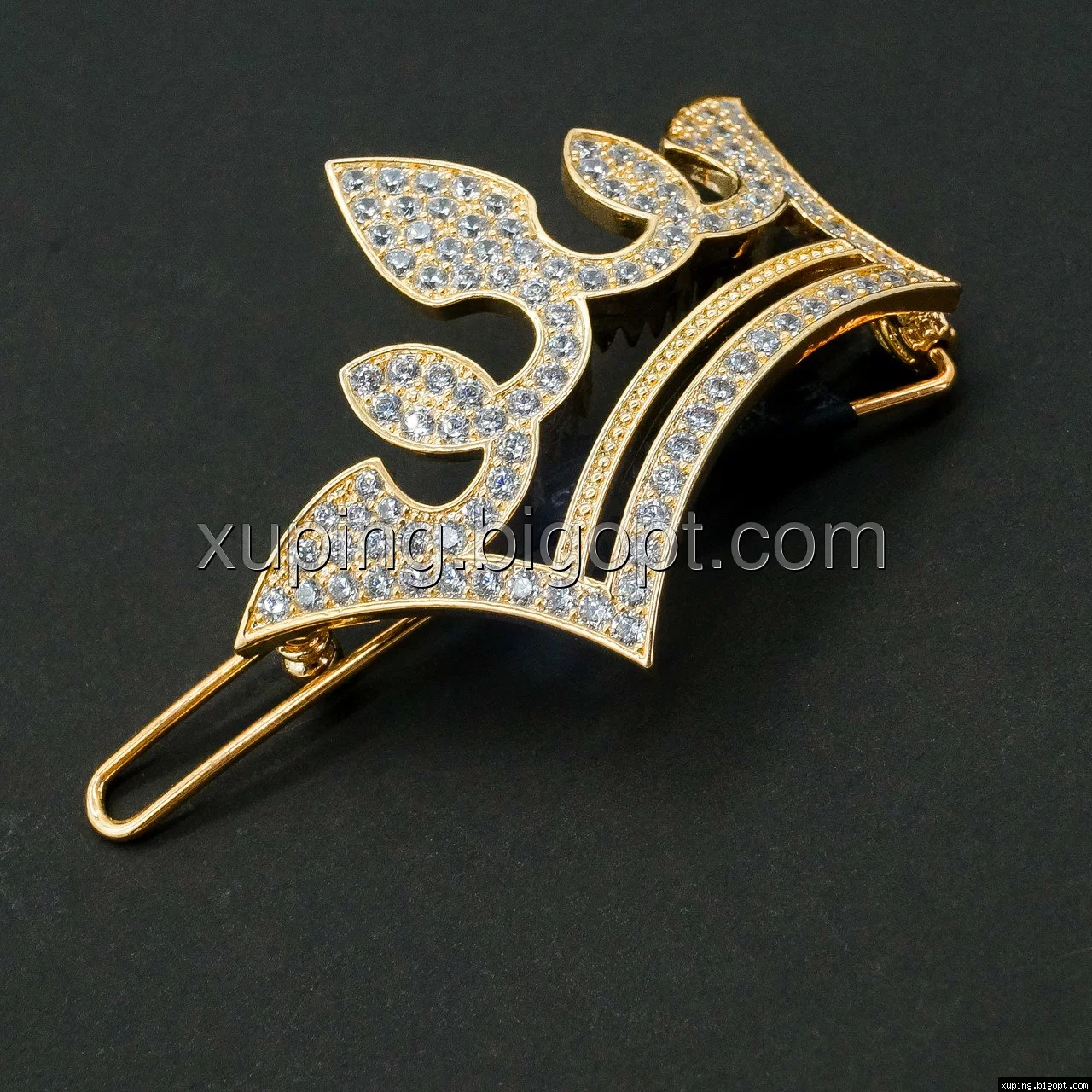 Заколка выполнена из медицинского сплава на основе латуни с добавлением легирующих элементов, с целью улучшения каких-либо его свойств, например коррозионной стойкости или прочности. Такой сплав не вызывает аллергии, не вступает в реакцию с потом человека, не меняет свои свойства под воздействием соленой воды и солнца. Поверхность заколки покрыта золотом 18 карата.