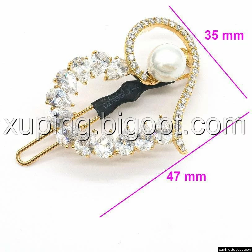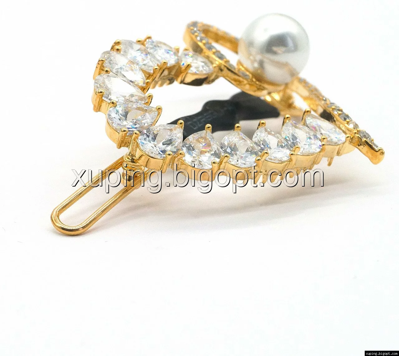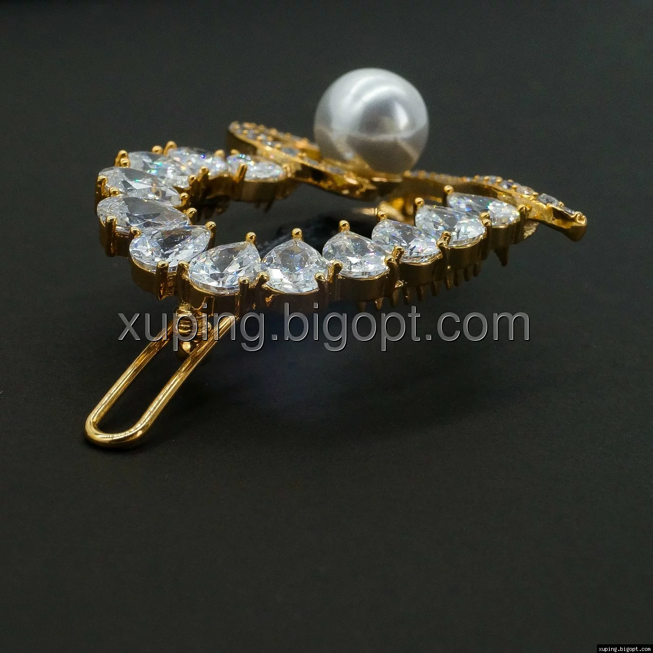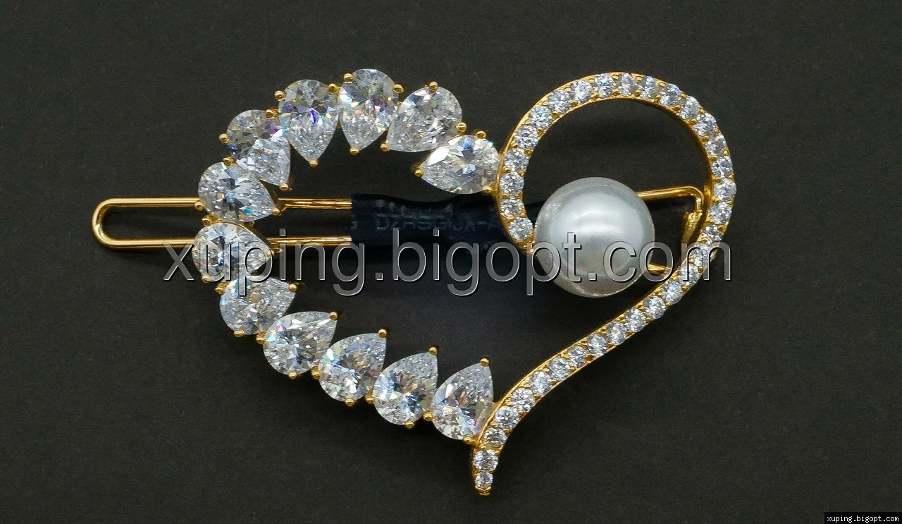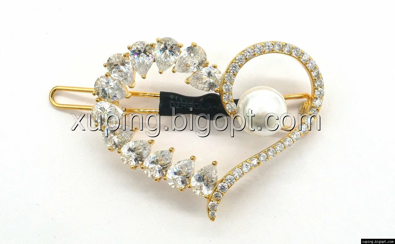 Заколка позолоченная, Сердце с Жемчужиной и цирконием