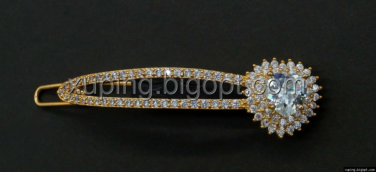Заколка позолоченная, Сердце в россыпи циркония