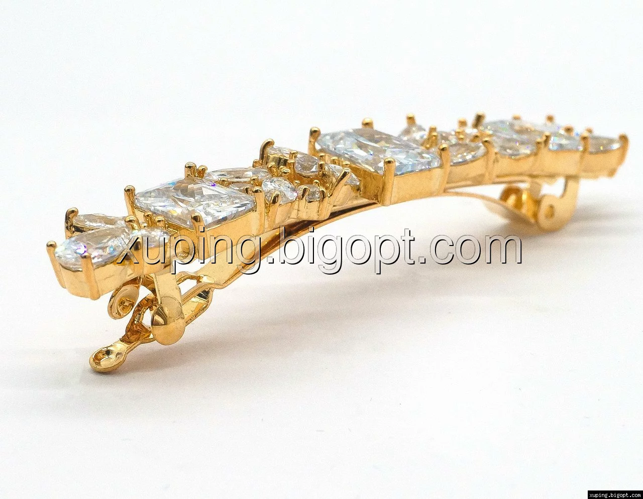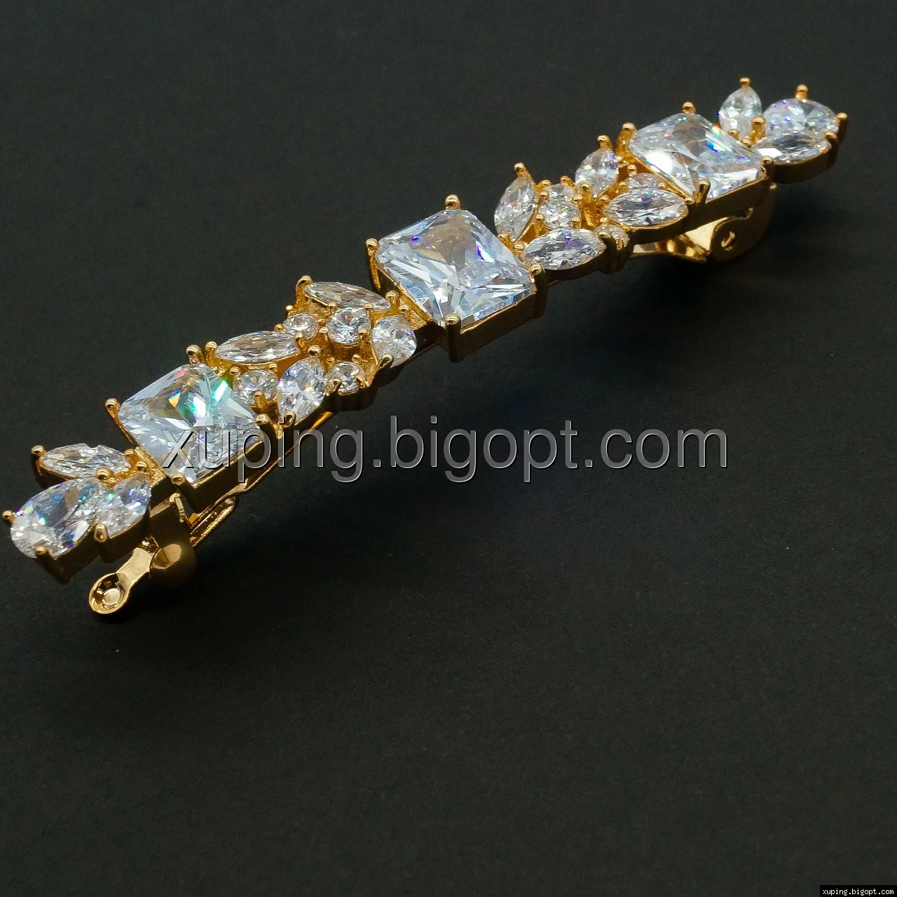 Заколка позолоченная, Три квадратных циркония