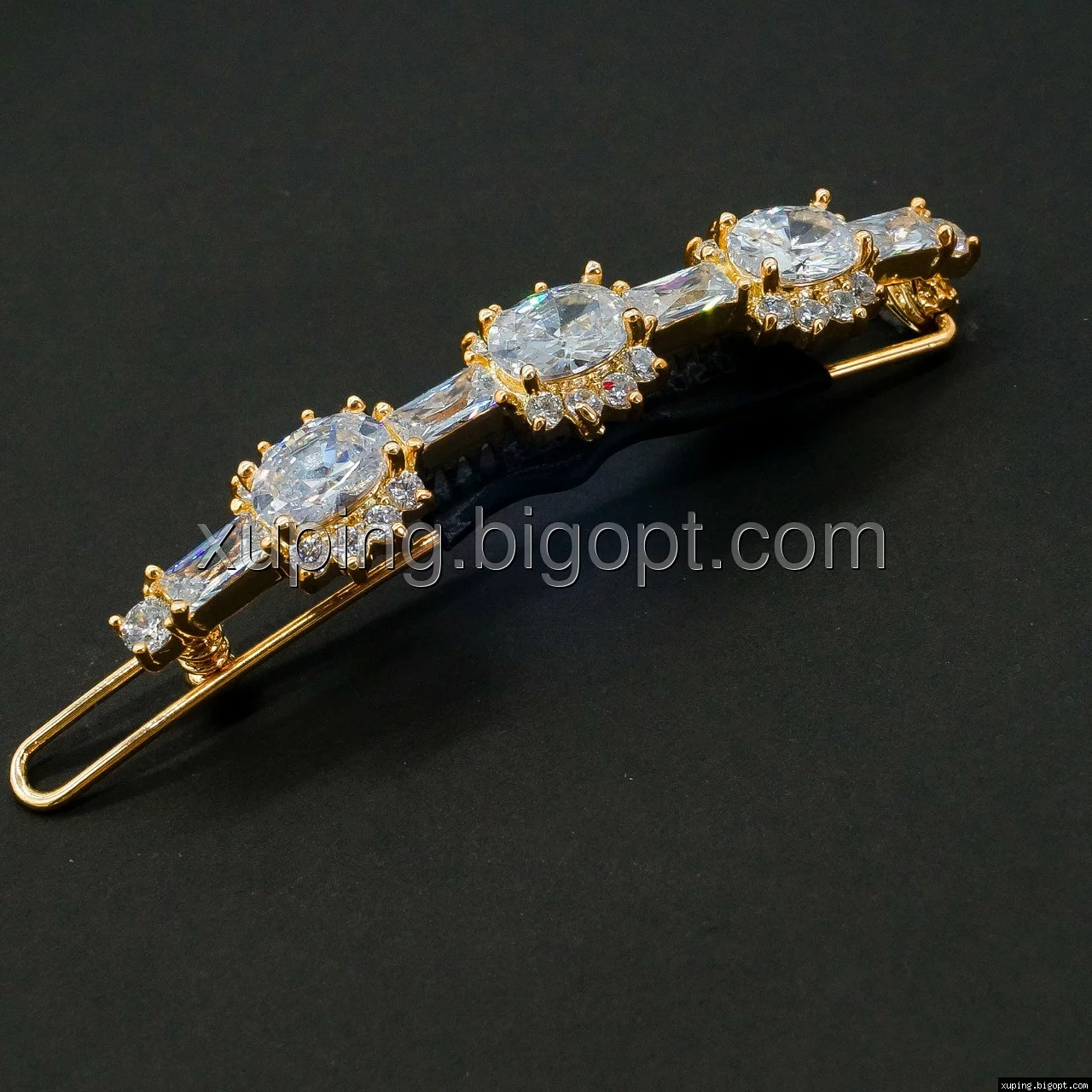 Заколка выполнена из медицинского сплава на основе латуни с добавлением легирующих элементов, с целью улучшения каких-либо его свойств, например коррозионной стойкости или прочности. Такой сплав не вызывает аллергии, не вступает в реакцию с потом человека, не меняет свои свойства под воздействием соленой воды и солнца. Поверхность заколки покрыта золотом 18 карата.