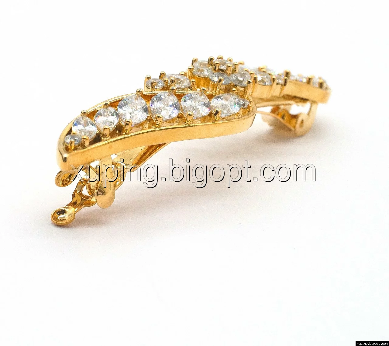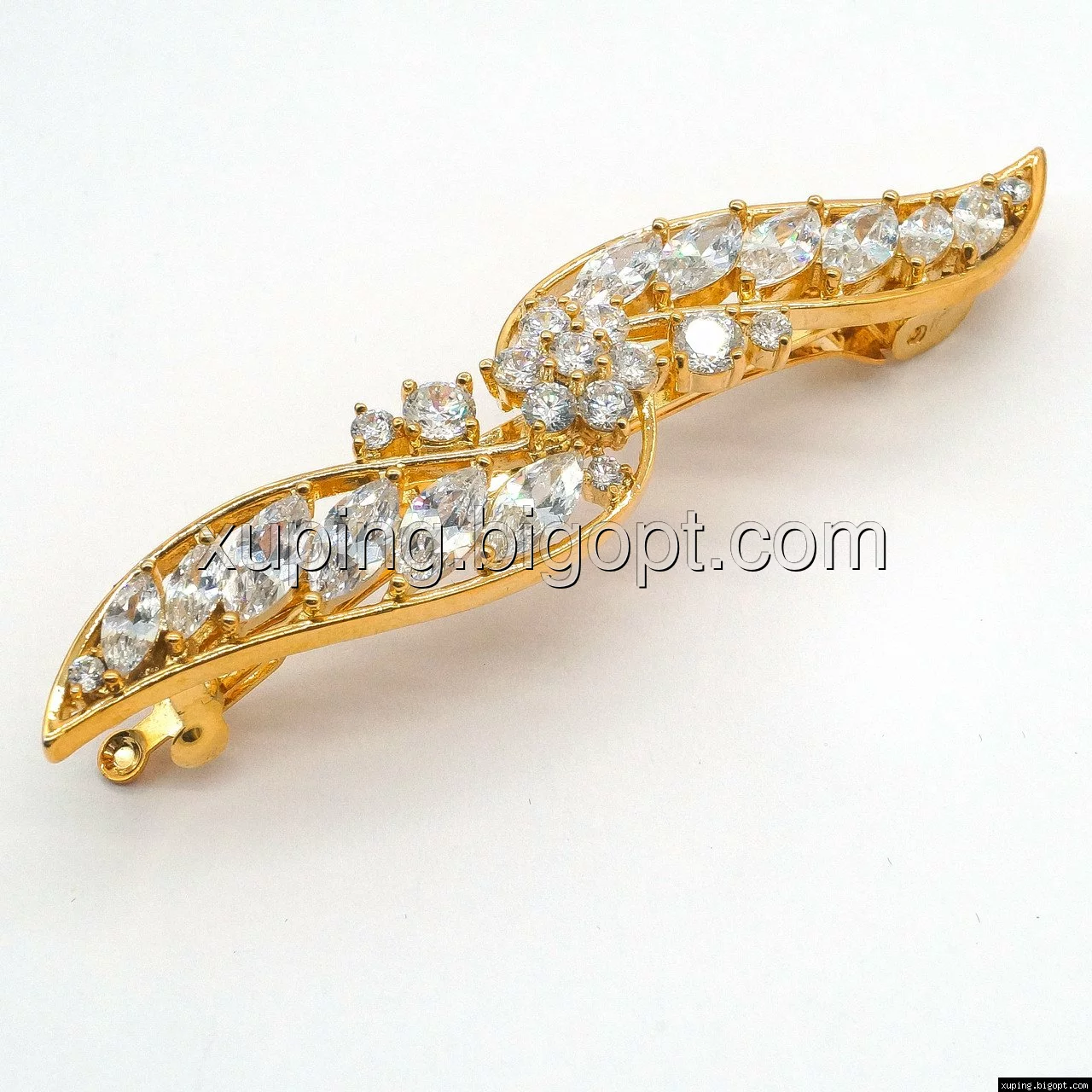 Заколка позолоченная, Волна с цирконием