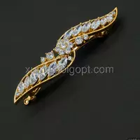 Заколка выполнена из медицинского сплава на основе латуни с добавлением легирующих элементов, с целью улучшения каких-либо его свойств, например коррозионной стойкости или прочности. Такой сплав не вызывает аллергии, не вступает в реакцию с потом человека, не меняет свои свойства под воздействием соленой воды и солнца. Поверхность заколки покрыта золотом 18 карата.