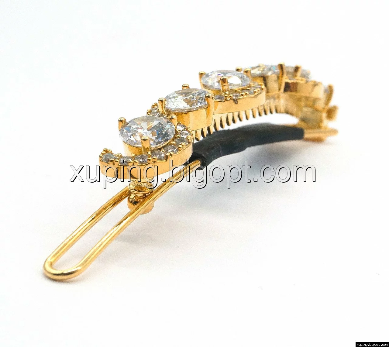 Заколка выполнена из медицинского сплава на основе латуни с добавлением легирующих элементов, с целью улучшения каких-либо его свойств, например коррозионной стойкости или прочности. Такой сплав не вызывает аллергии, не вступает в реакцию с потом человека, не меняет свои свойства под воздействием соленой воды и солнца. Поверхность заколки покрыта золотом 18 карата.
