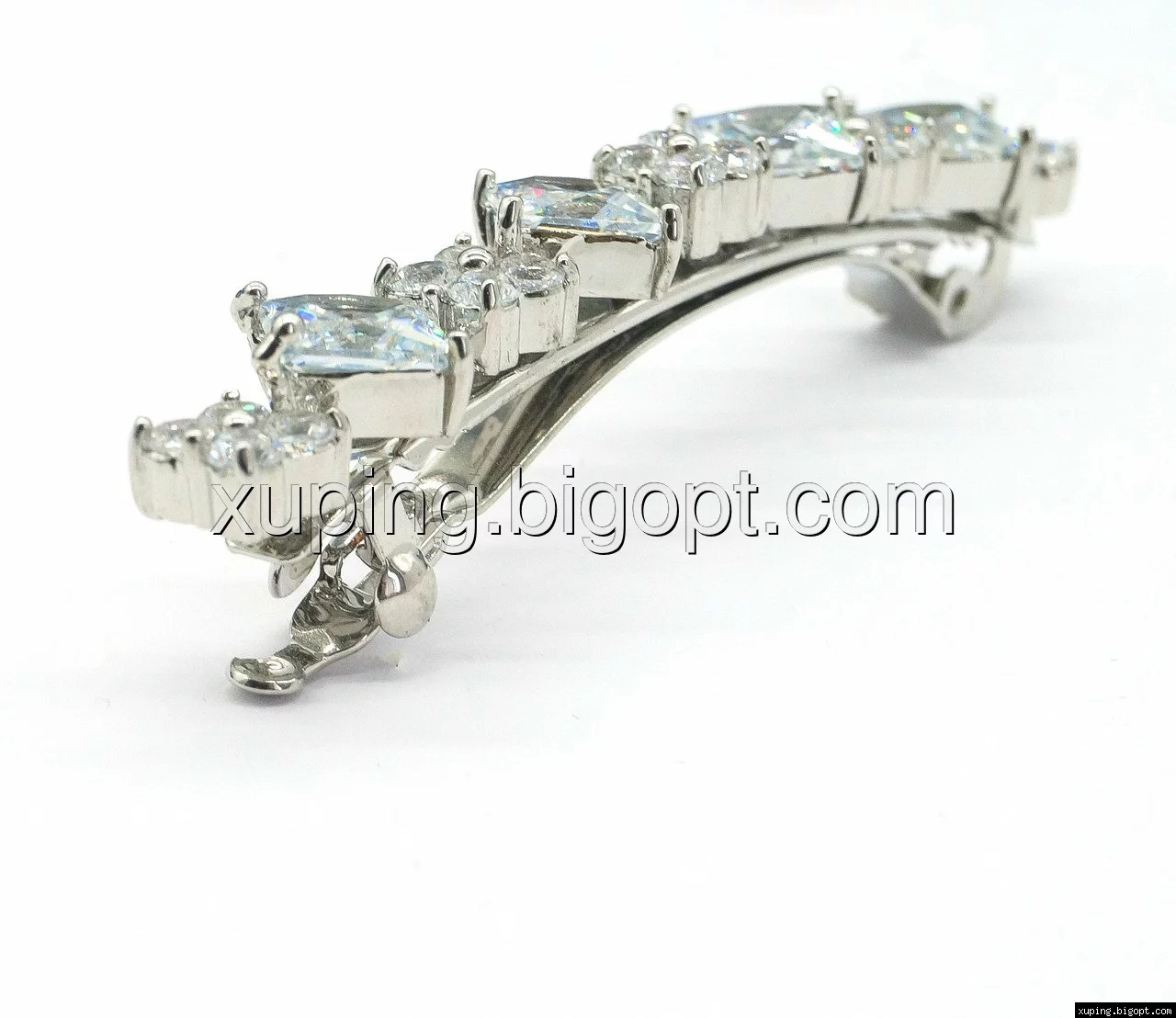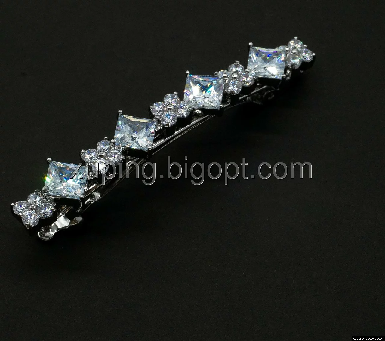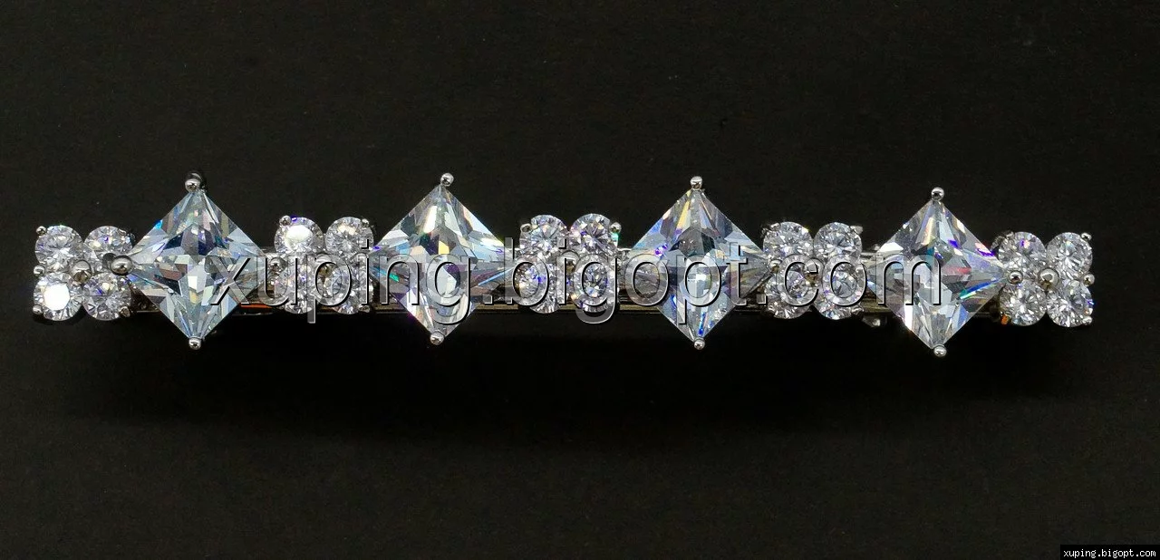 Заколка родированная, Четыре ромбика циркония