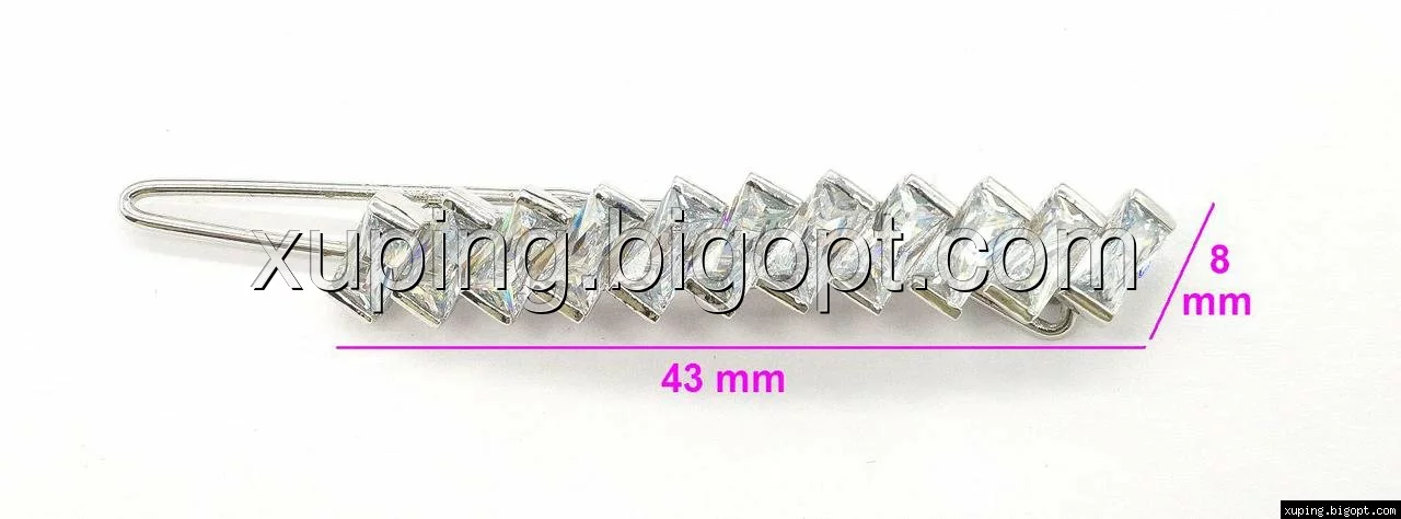 Заколка выполнена из медицинского сплава на основе титана с добавлением легирующих елементов, с целью улучшения каких-либо ее свойств, например коррозионной стойкости или прочности. Такой сплав не вызывает аллергии, не вступает в реакцию с потом человека, не меняет свои свойства под воздействием соленой воды и солнца. Поверхность заколки покрыта родием чтобы придать ей ярко-белый цвет и дополнительно защитить от повреждений .