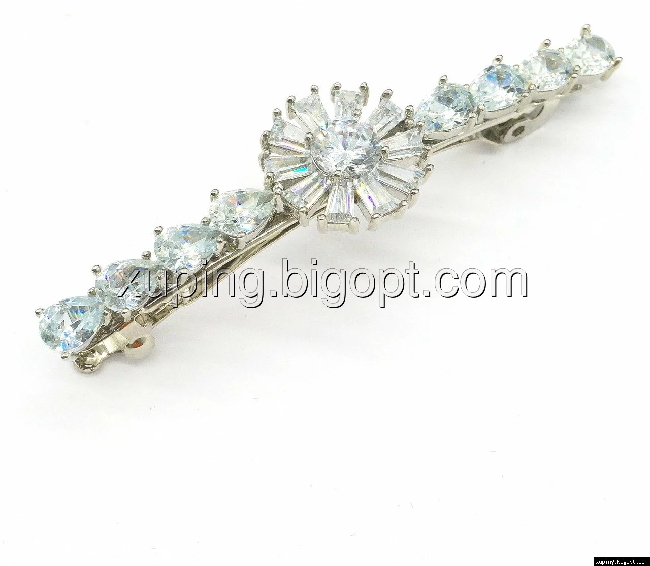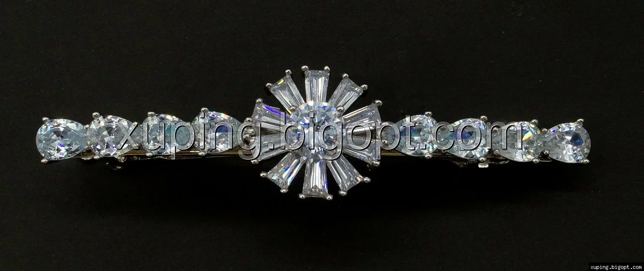 Заколка родированная, Цветок с багетным цирконием