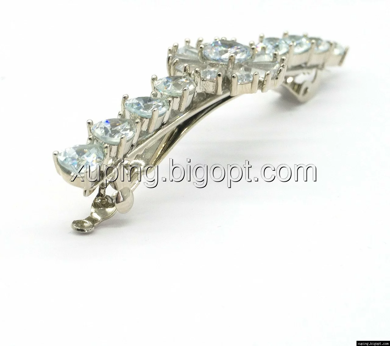 Заколка выполнена из медицинского сплава на основе титана с добавлением легирующих елементов, с целью улучшения каких-либо ее свойств, например коррозионной стойкости или прочности. Такой сплав не вызывает аллергии, не вступает в реакцию с потом человека, не меняет свои свойства под воздействием соленой воды и солнца. Поверхность заколки покрыта родием чтобы придать ей ярко-белый цвет и дополнительно защитить от повреждений .